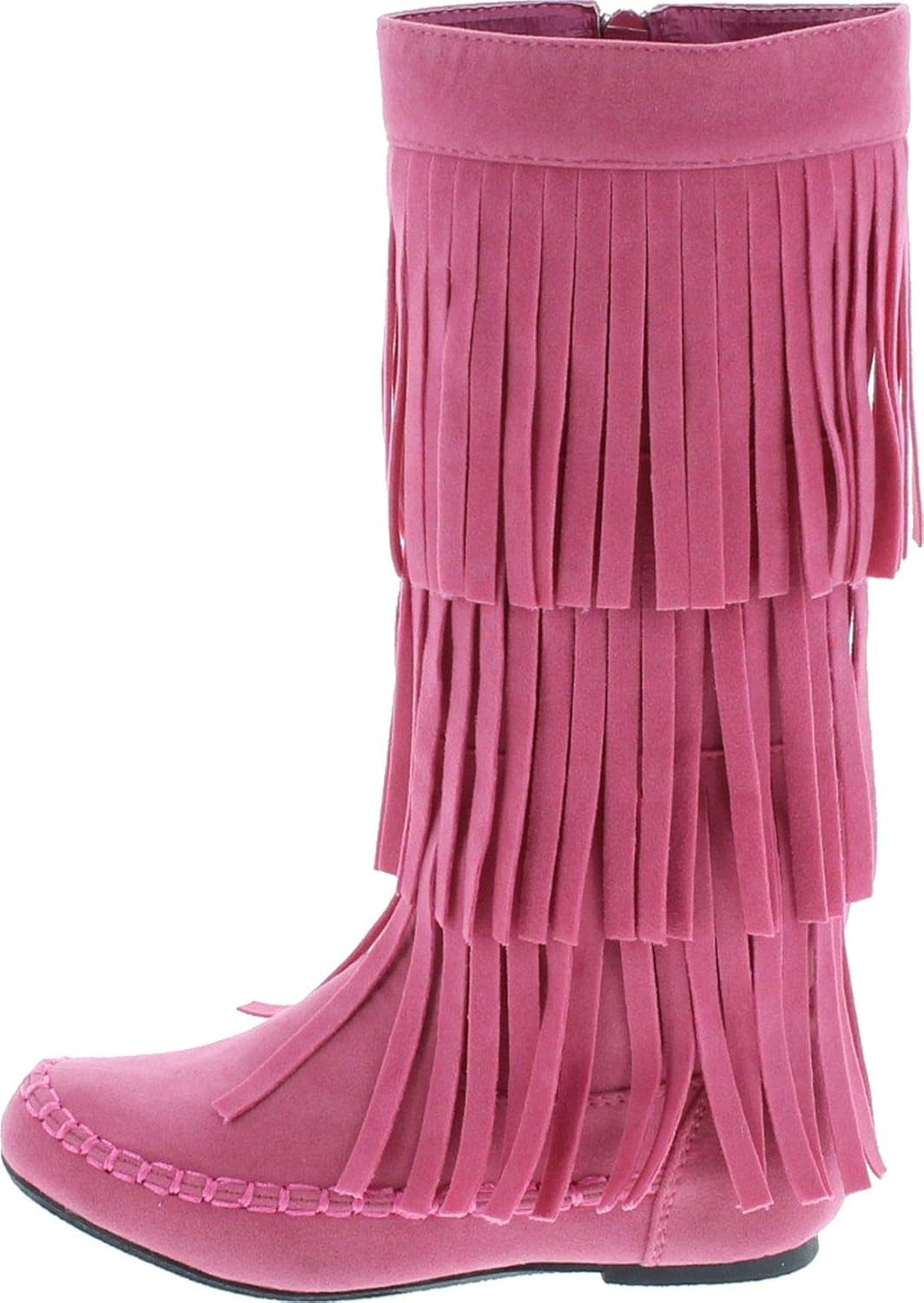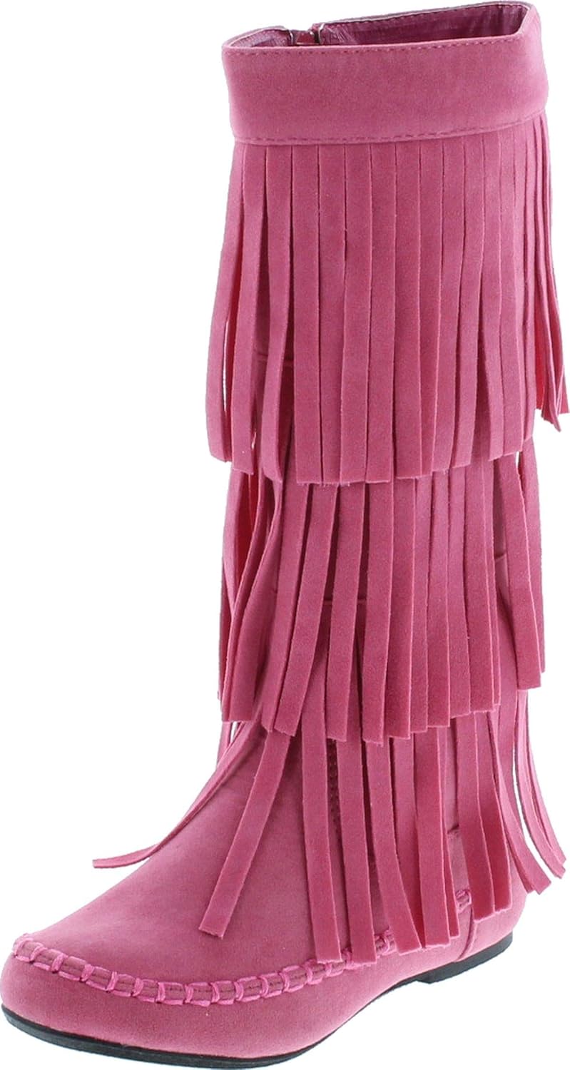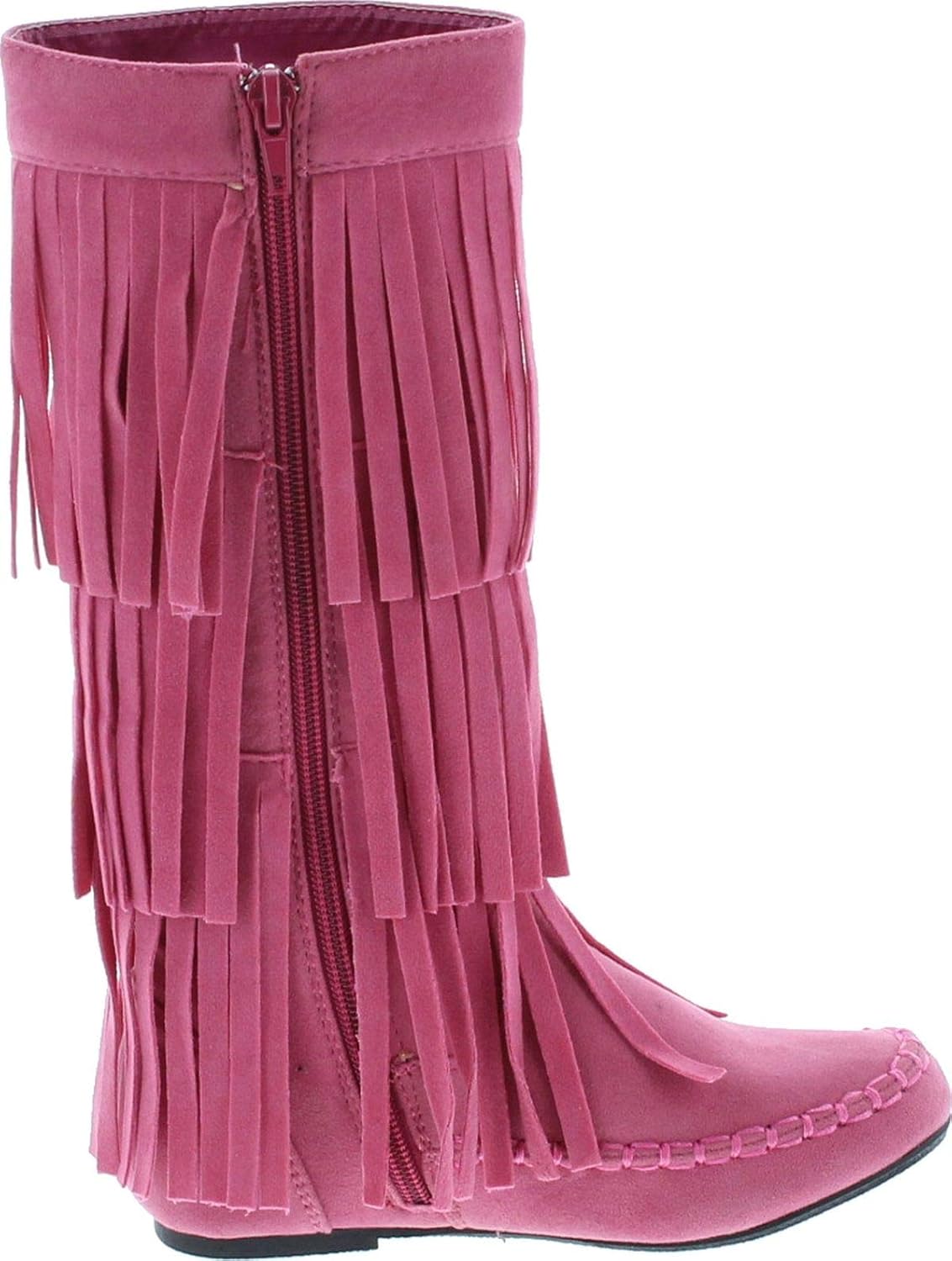 Я ЛЮБЛЮ ДЕТЕЙ-AVA-18K Девочки Ботинки до середины голени в стиле мокасин с трехслойной бахромой, боковая молния, закрытый заостренный носок, плоская резиновая подошва, мягкая внутренняя стелька.