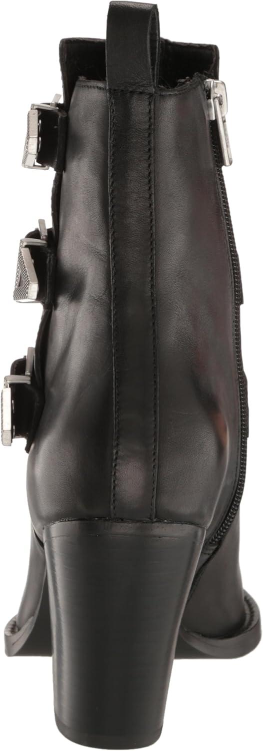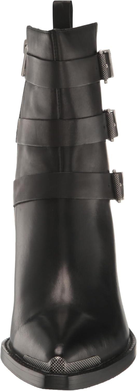 Ботинки этого сезона имеют стиль, сочетающий дух Дикого Запада и рок-шик. Эти черные кожаные ботильоны оснащены металлическими текстурированными пряжками на концах ремешков в байкерском стиле.