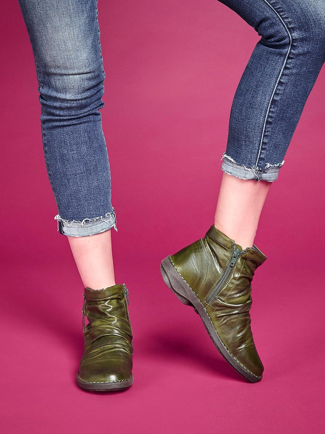 Ботильоны на щиколотку Miz Mooz Pleasant отличаются мягкой искусственно состаренной отделкой, затемненной обработкой и небольшим резиновым каблуком.