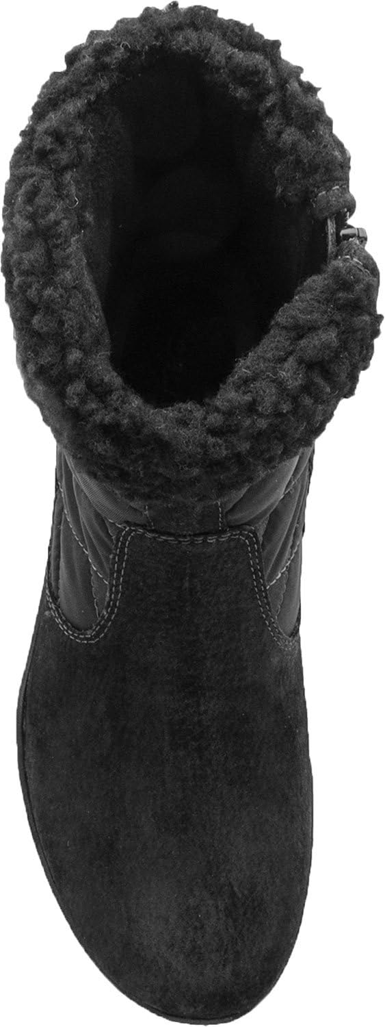 Благополучно теплый, этот ботинок на молнии оснащен уютной стеганой панелью и воротником из искусственного меха, которые придают ему элегантный вид, сохраняя тепло. Верх из премиальной кожи и стеганой ткани с подкладкой из мягкой кожи Эксклюзивная стелька обеспечивает амортизацию для всей стопы от пятки до носка Амортизирующая поддержка свода стопы для комфорта на весь день [Высота голенища: 6.3; Обхват голенища: 12.9]