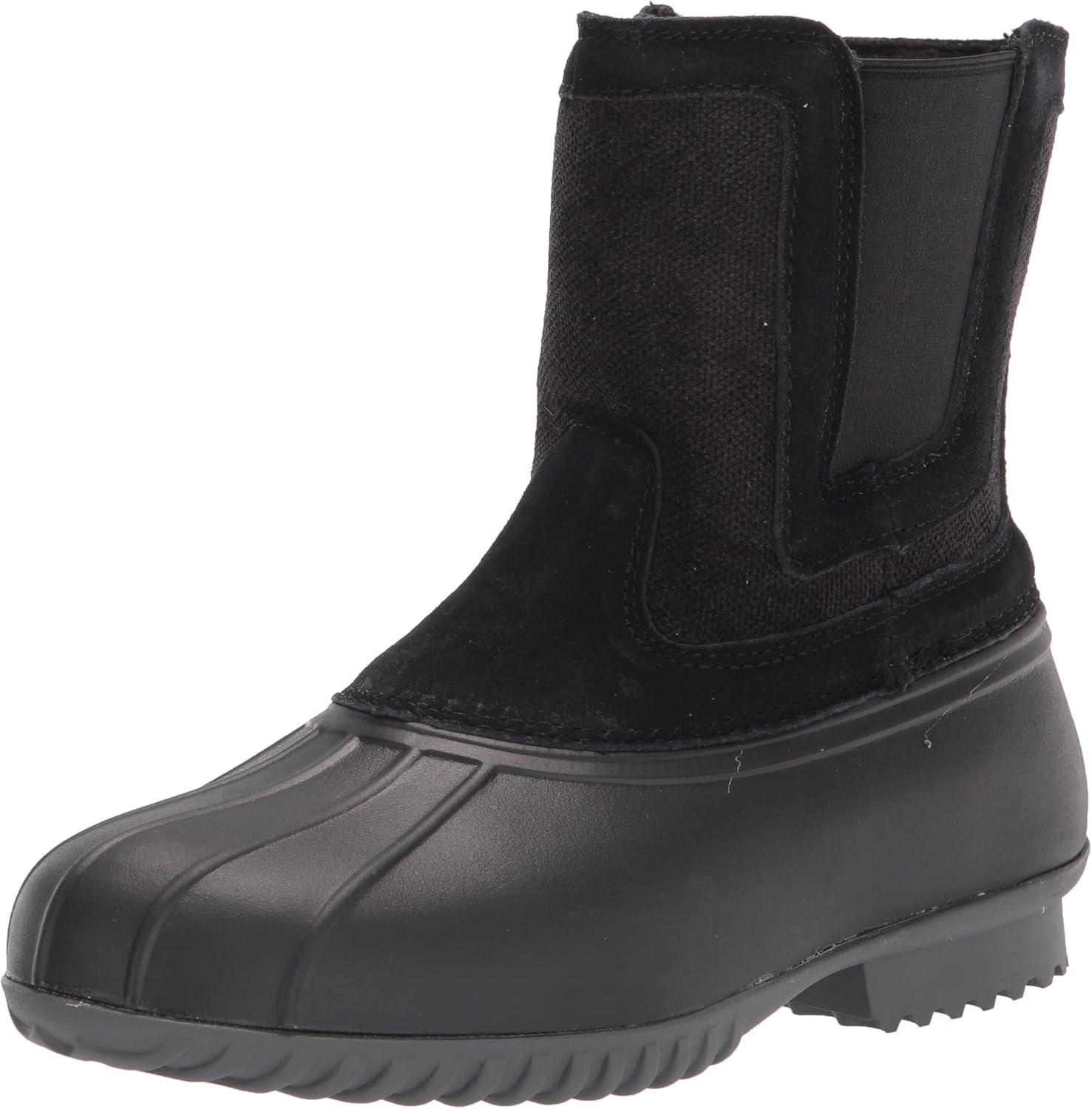 Прочный верх из замши и ткани с подкладкой из искусственного меха. Внутренняя боковая молния и эластичные вставки обеспечивают легкость надевания и снятия. Формованная носочная часть из EVA для защиты от погодных условий. Система стелек Vaporex с удерживанием тепла для дополнительной изоляции и амортизации. Резиновая подошва с волнистым рисунком протектора для надежного сцепления на мокрой и сухой поверхности. Съемная стелька, Scotchgard, Thinsulate, Vaporex, водонепроницаемость.
