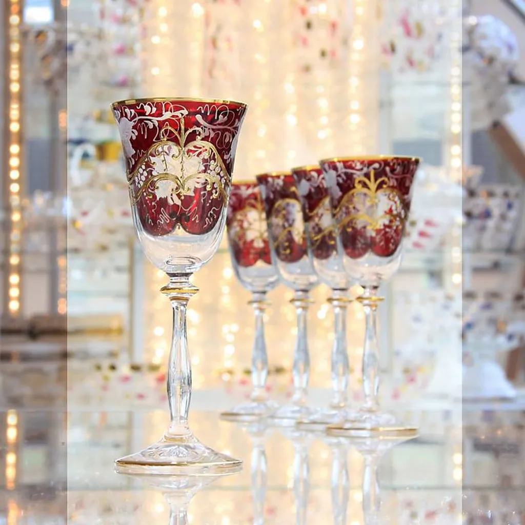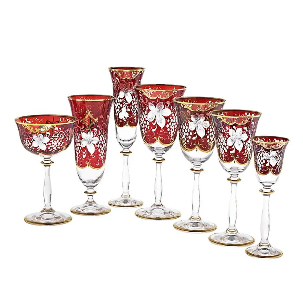 Украсьте свой дом нашей великолепной коллекцией хрустального стекла Золотой виноград. Эти искусно изготовленные вручную бокалы, вазы, чаши, шкатулки и колпаки проходят множество этапов обработки - от изготовления до травления.