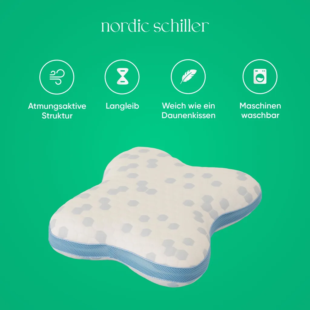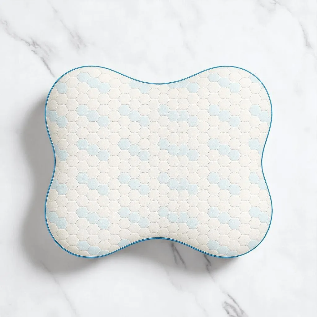 Особенности: Эргономичная форма бабочки, охлаждающая, снимающая давление, способствует здоровому сну на боку и спине, гипоаллергенная, чехол можно стирать