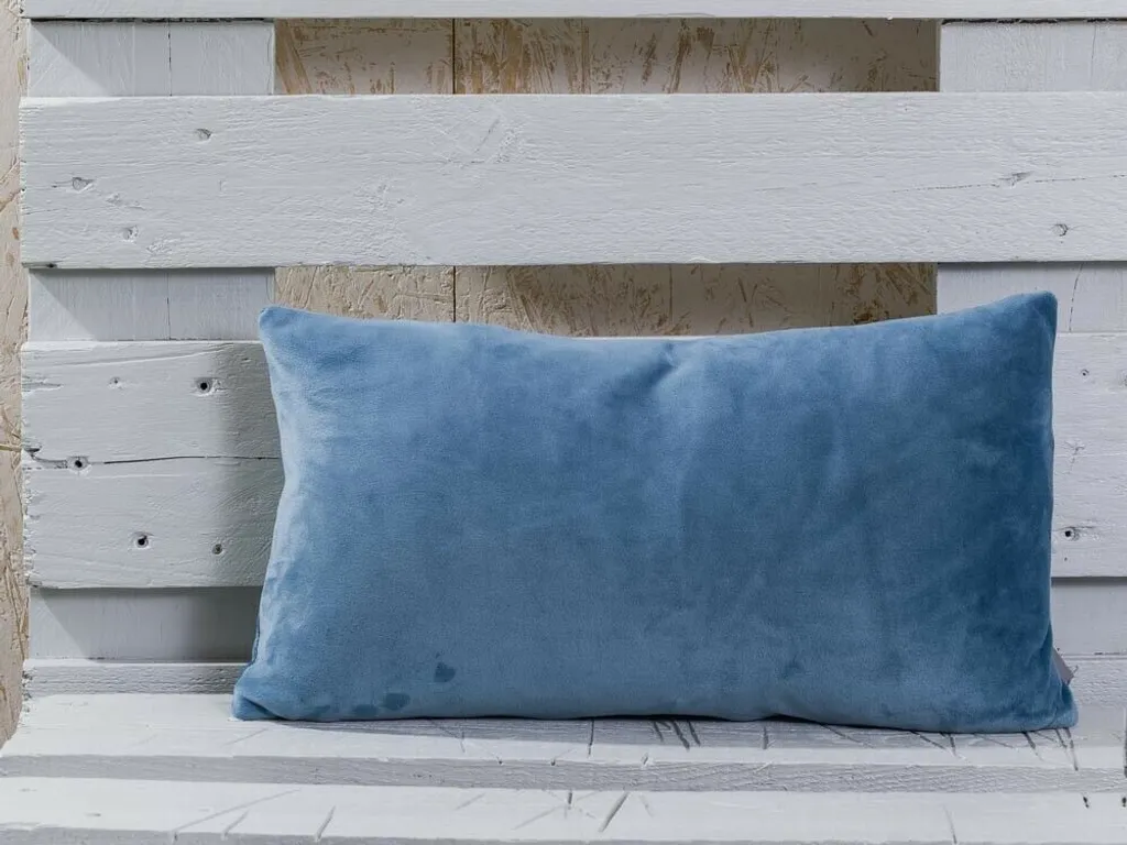 Подушка Pad Smooth пыльно-синего цвета. Мягкий бархатистый чехол для подушки пыльно-синего цвета. Размер примерно 25x50 см.