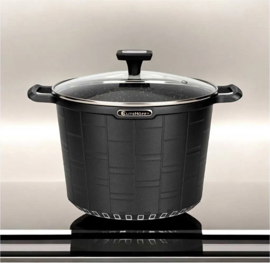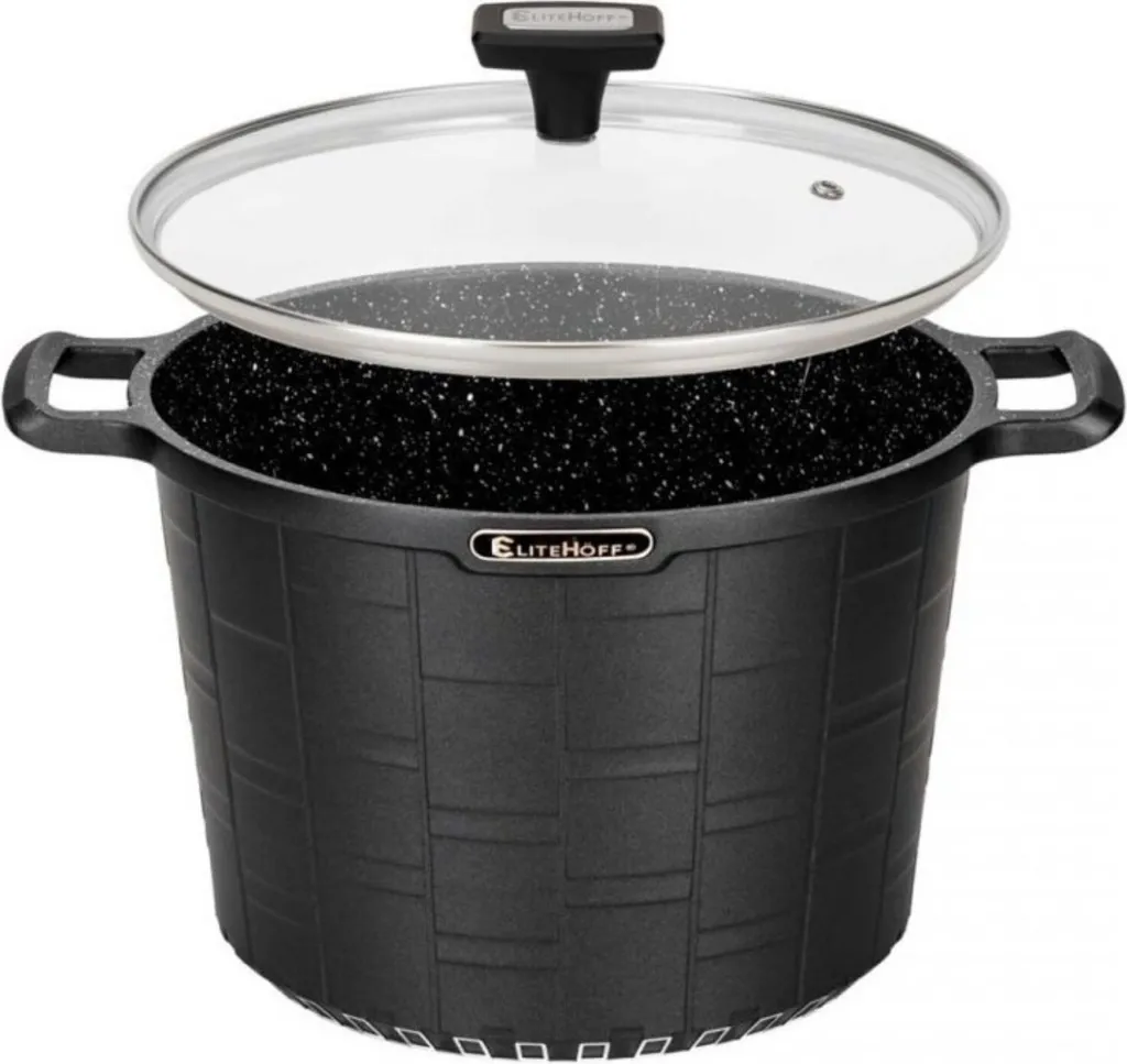 Гранитная кастрюля диаметром 24 см и емкостью 6,5 литров - это прочная и функциональная кухонная емкость, идеально подходящая для приготовления больших порций супов, соусов, гуляша или рагу.