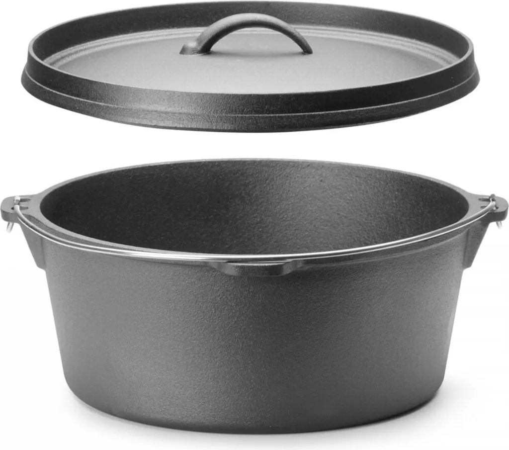 Подходит для контакта с пищевыми продуктами, керамической плиты, электрической плиты, газовой плиты, индукционной плиты, духовки. Не подходит для посудомоечных машин. Изготовлено из чугуна. Безопасно для использования в духовке. Не подходит для мытья в посудомоечной машине. Полный комплект с крышкой и ручкой. Ручка идеально подходит для подвешивания над огнем. Материал: железо. Количество в упаковке: 1 шт. Простота использования: да. Высота: 155 мм.