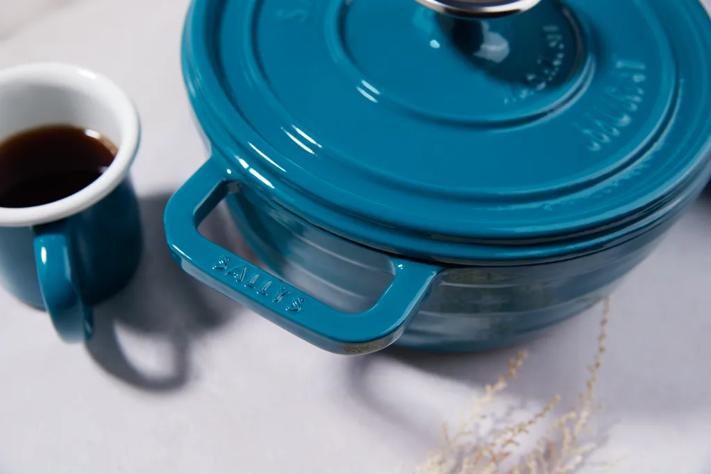 Чугун веками использовался в качестве посуды для приготовления пищи и выпечки. В те времена кастрюлю просто ставили на открытый огонь или раскаленные угли. Сегодня ее можно использовать на всех типах плит, включая индукционные, и даже в духовке. Чугун очень термостойкий и выдерживает температуру в несколько сотен градусов. Это, конечно, идеально - он идеально подходит для получения восхитительного вкуса жареного! Однако этот прочный материал не подходит для быстрой готовки, поскольку нагревается медленно. С другой стороны, он оптимально и долго сохраняет тепло, идеально передавая его продукту. Поэтому он также идеально подходит для тушения блюд - для медленного приготовления или тушения при низких температурах. Это сохраняет вкус, витамины и питательные вещества. Равномерное распределение тепла обеспечивает идеальное и равномерное приготовление пищи. Чугун - это натуральный материал, покрытый слоем стекла, называемого эмалью. Чугунная кастрюля чрезвычайно прочная, долговечная, универсальная и легко моется вручную - это поистине честный материал. Мне нравится готовить в ней тушеные блюда, рагу и хлеб, но и другие блюда тоже получаются просто замечательными. Моя чугунная посуда сделана на удивление качественно. Тяжелые, идеально подогнанные крышки позволяют свести к минимуму конденсат во время приготовления. Многочисленные небольшие выступы на нижней стороне крышки обеспечивают равномерное увлажнение жаркого конденсатом. Это гарантирует, что еда постоянно поливается, сохраняя ее сочность.