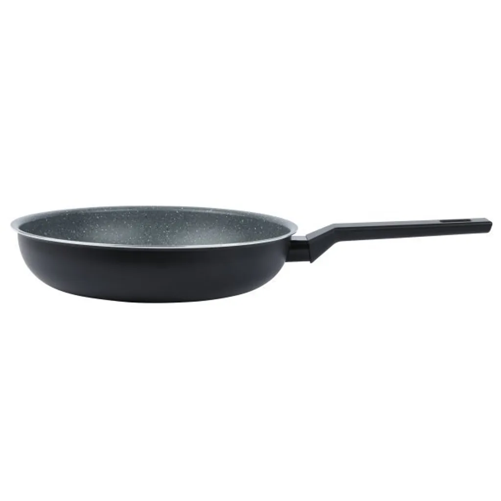 Сковорода Blackline, переработанный алюминий, штампованная нержавеющая сталь, антипригарное покрытие PTFE, пластиковая ручка с покрытием soft-touch, с бортиком для слива, подходит для всех типов плит, включая индукционные, черная, диаметр около 24 см, высота около 4,5 см, толщина стенок около 2,2 мм, толщина дна около 2,5 мм