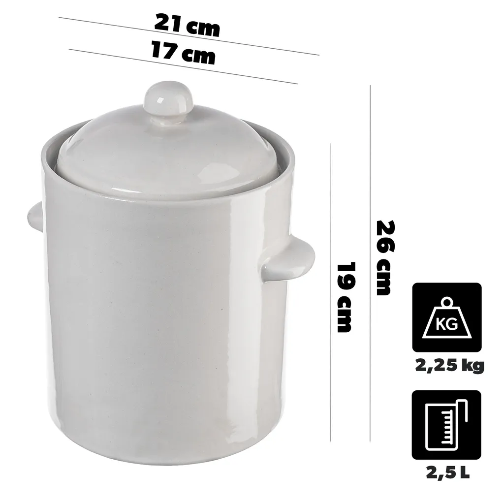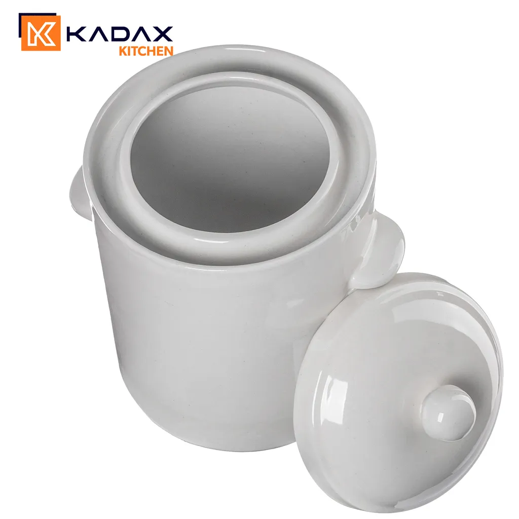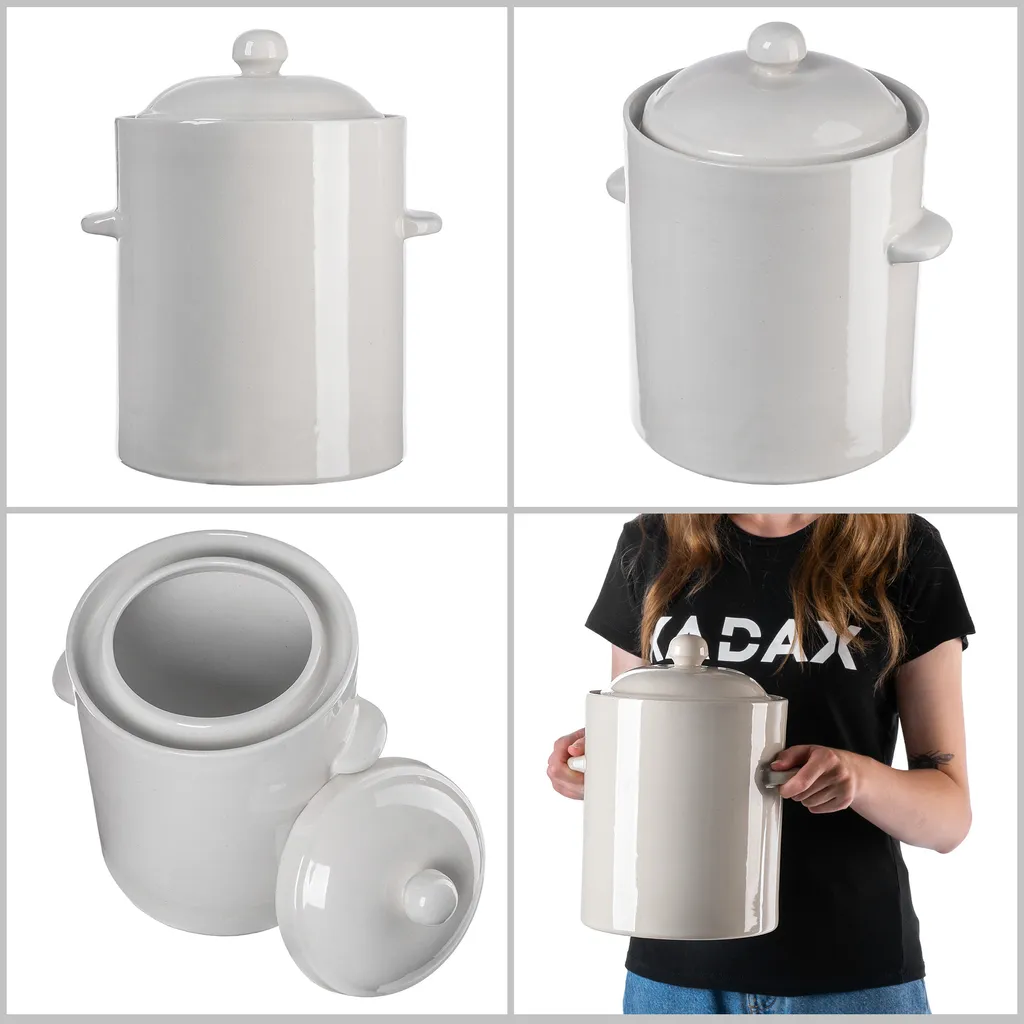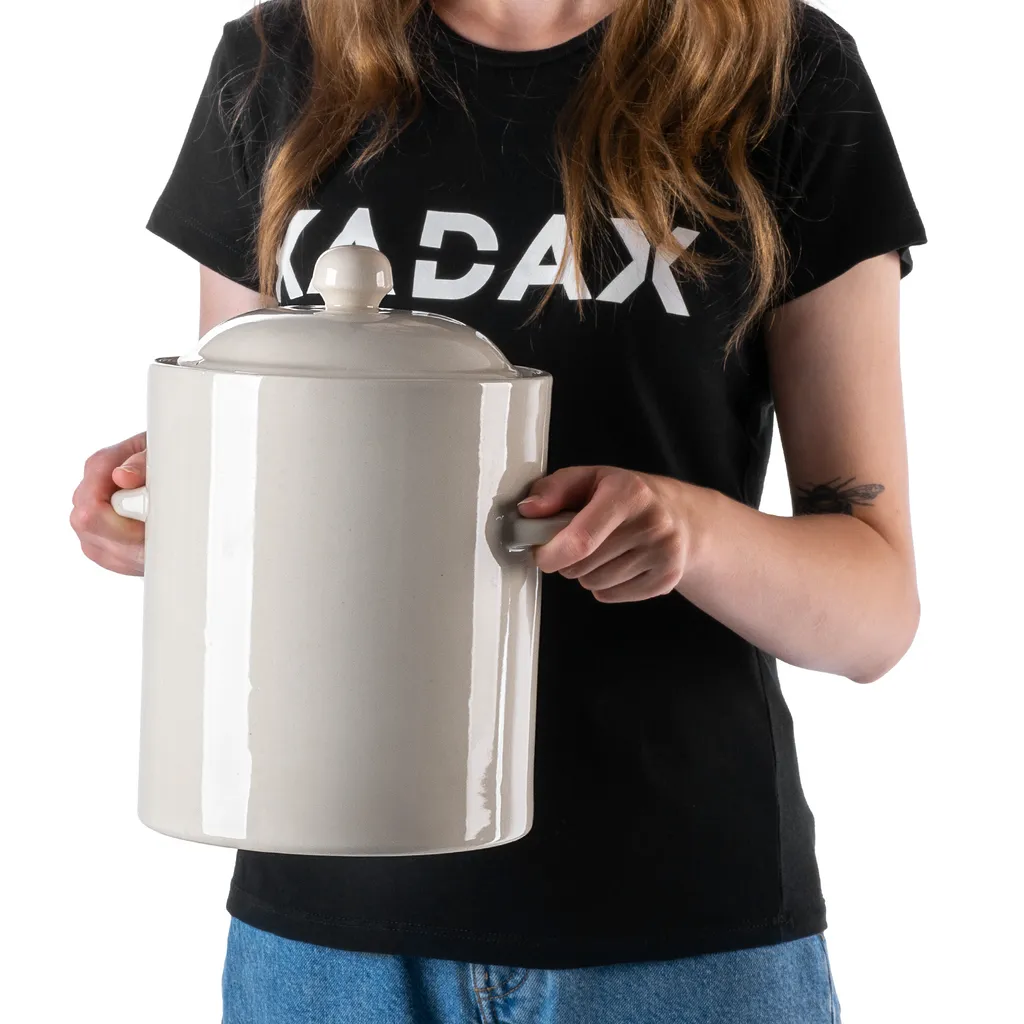 С кастрюлей для солений марки KADAX вам не нужно беспокоиться о влиянии материалов на ваши продукты. Высококачественная керамика безопасна для контакта с пищевыми продуктами. Благодаря герметичной крышке процесс ферментации происходит без консервантов, а соленья богаты витаминами. Вы можете выбрать объем в соответствии с вашими потребностями: 1,8 литра, 2,5 литра и 5 литров.