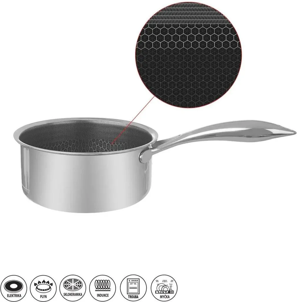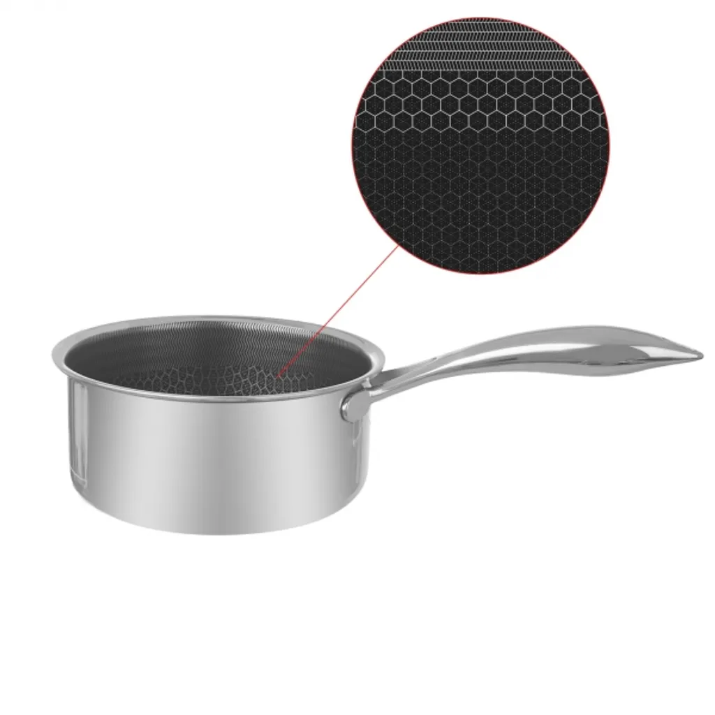 Высококачественная кастрюля из нержавеющей стали объемом 1,5 литра с антипригарным покрытиемЭта кастрюля объемом 1,5 литра изготовлена из высококачественной нержавеющей стали и имеет антипригарное покрытие, которое облегчает приготовление пищи и упрощает очистку. Кастрюля подходит для всех типов варочных панелей, что делает ее универсальной и практичной для любой кухни.