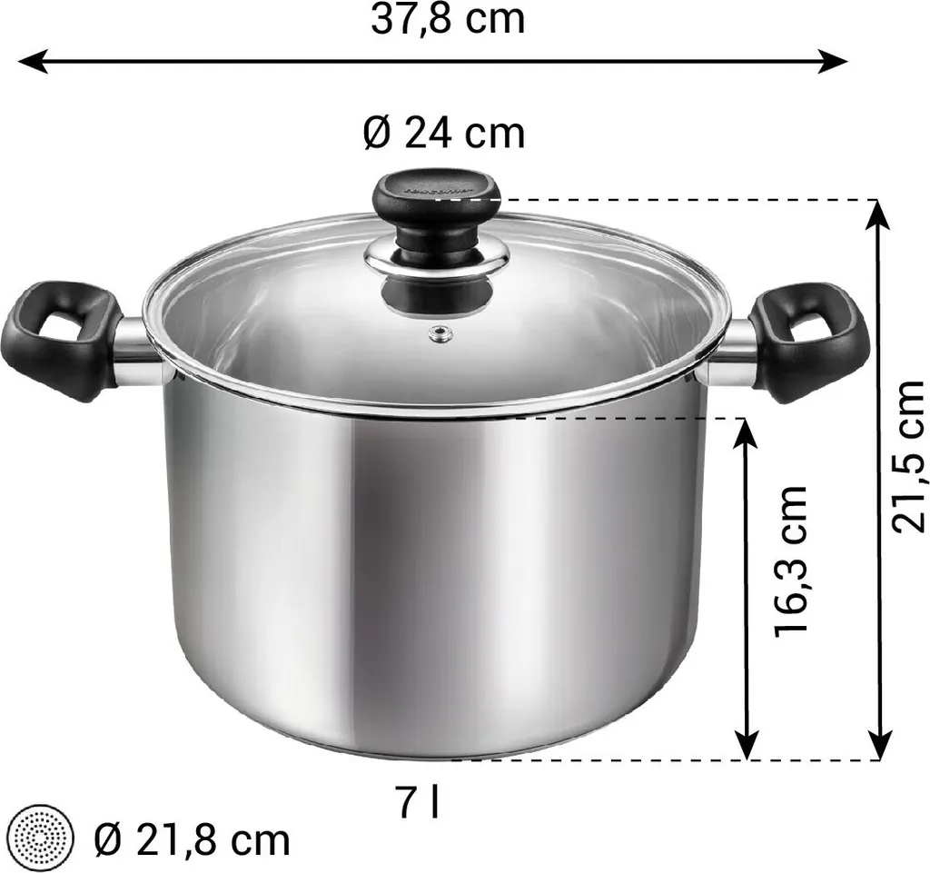 Современная 7-литровая кастрюля из нержавеющей стали. Что отличает посуду BRAVA? Посуда BRAVA, изготовленная из высококачественной нержавеющей стали, - идеальный кухонный инструмент для ежедневного приготовления пищи. Кастрюля имеет утолщенное многослойное дно, подходящее для всех плит, включая индукционные. Эргономичные ручки из прочного пластика удобны и безопасны. Они не нагреваются во время приготовления. Прочные крышки из нержавеющей стали оснащены отверстием для выхода пара.