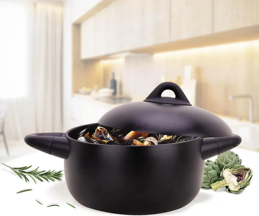 Мраморная индукционная кастрюля диаметром 22 см и объемом 4,0 л с крышкой/чайником - это высококачественный набор посуды и идеальное дополнение к вашей кухне. Изготовленная из прочного литого алюминия, эта кастрюля надежна и долговечна в течение многих лет. Диаметром 22 см и емкостью 4,0 л она идеально подходит для приготовления больших блюд для семьи и друзей. Благодаря двухслойному мраморному покрытию еда не пригорает, и ее легко мыть. Наша кастрюля также имеет полностью совместимую с индукцией вставку, что делает ее подходящей для всех типов варочных панелей. Выбирайте нашу индукционную мраморную кастрюлю с крышкой и чайником диаметром 22 см и объемом 4,0 л для удобства приготовления пищи и элегантного дизайна.