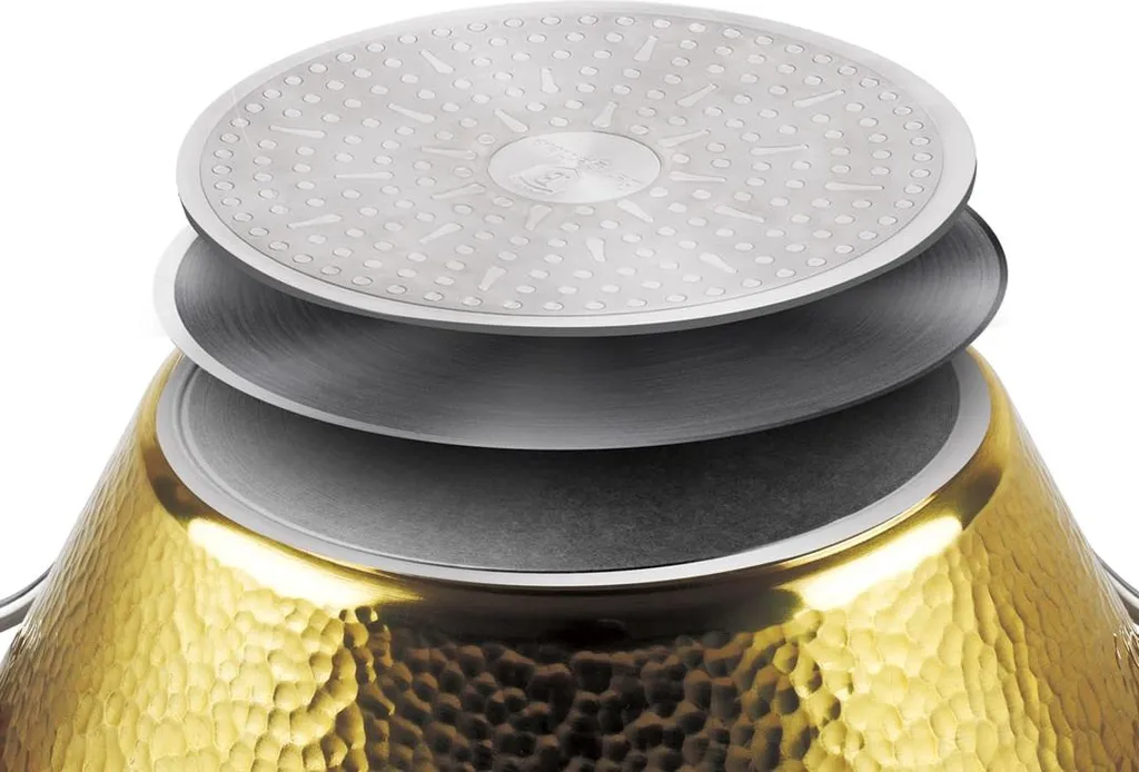 Индукционное дно - подходит для всех типов плит.Оптимизированное индукционное дно обеспечивает быстрое время отклика, постоянную температуру и максимальную энергоэффективность. Совместимо с газовыми, электрическими, керамическими, галогенными и индукционными плитами. Экологически чистый и простой в уходе.