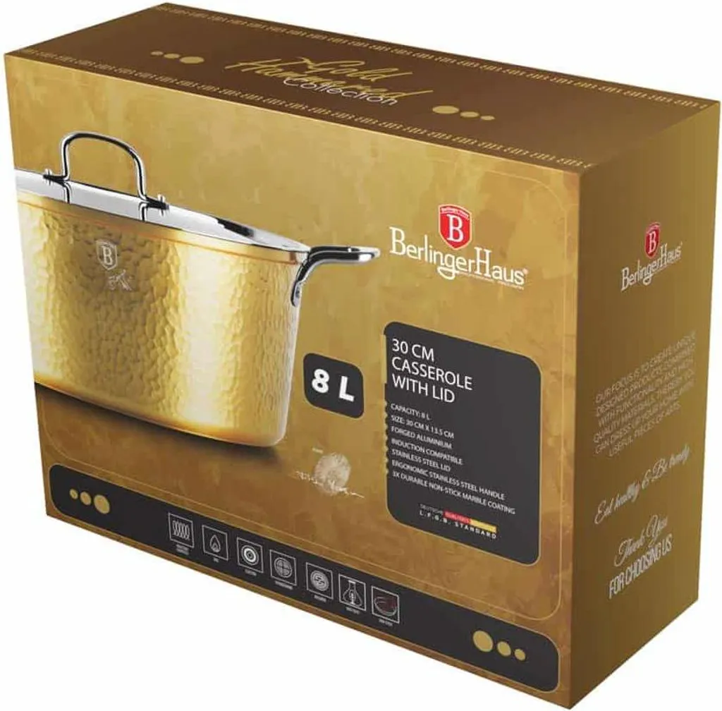 Кастрюля Berlinger Haus BH8012 (Ø30 см) из коллекции Hammered Gold разработана для щедрых порций и изысканных кухонь.