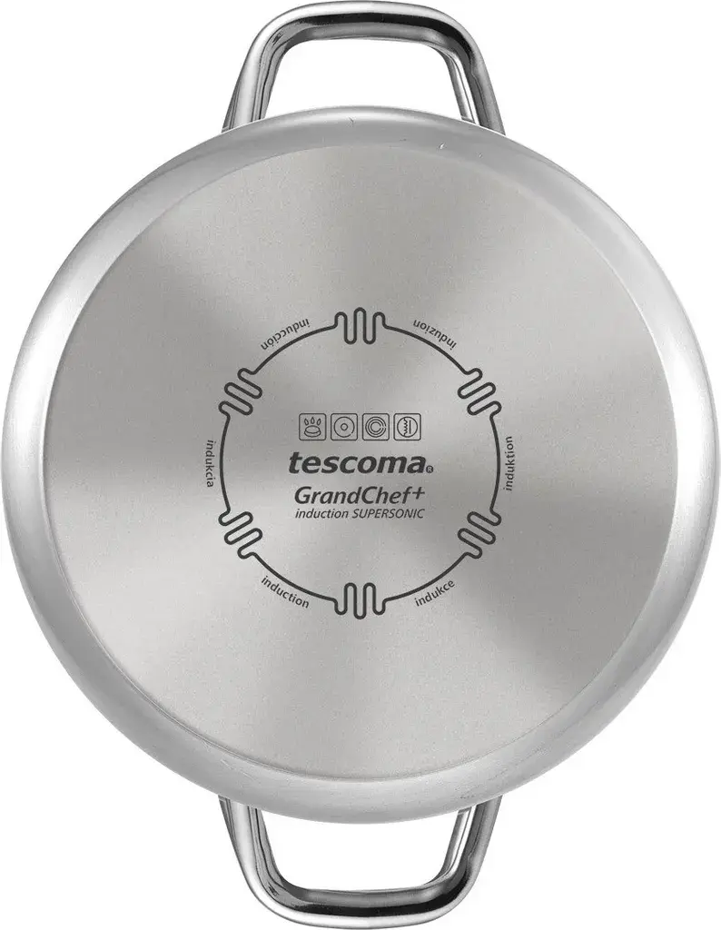 Прочная и долговечная кастрюля с современным индукционным дном. Что отличает кастрюлю GrandCHEF+? GrandCHEF+ оснащена революционным индукционным дном SUPERSONIC, которое отличается однородностью и гладкостью. Ручки кастрюли GrandCHEF+ из высококачественной нержавеющей стали полностью закрыты, водонепроницаемы и подходят для мытья в посудомоечной машине. Кастрюлю можно использовать на всех типах плит и в духовке. GrandCHEF+ расширяет ассортимент посуды TESCOMA. Материал: прочный алюминий и высококачественная нержавеющая сталь.