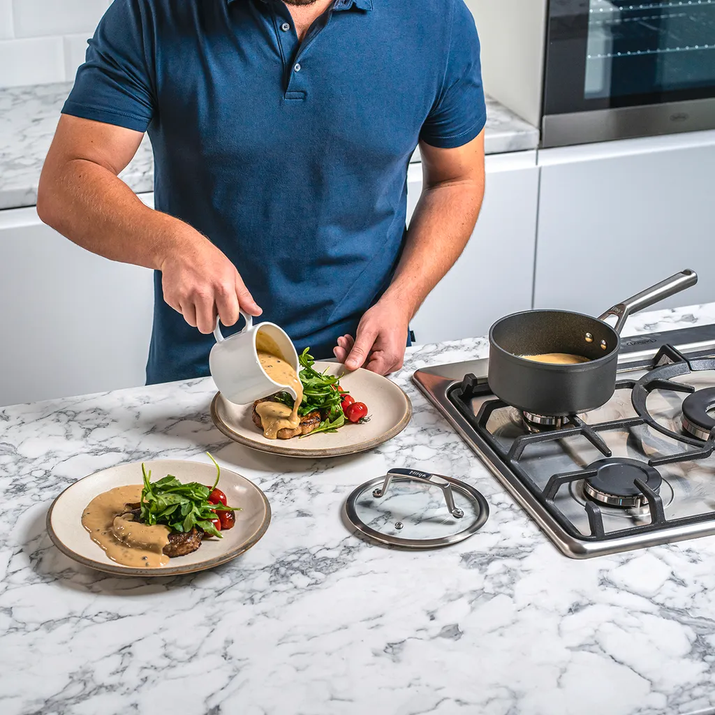 ZEROSTICK сочетает плазменную керамику с уникальным антипригарным покрытием. Это сохраняет покрытие каждой сковороды в целости и сохранности - никаких царапин и сколов! Сковороды Ninja Foodi ZEROSTICK можно мыть в посудомоечной машине, они устойчивы к царапинам и истиранию, а также подходят для использования с металлическими лопатками. Можно использовать в духовке при температуре до 260 °C. Подходит для всех типов плит, включая индукционные. Эта универсальная кастрюля оснащена высококачественной термостойкой стеклянной крышкой с отверстием для выхода пара. Основные моменты: Кастрюля с крышкой Можно использовать в духовке при температуре до 260 °C Подходит для следующих варочных панелей: индукционных, газовых, электрических и керамических Можно мыть в посудомоечной машине, антипригарное покрытие Размер: 16 см Техническое описание: Материал: анодированный алюминий Ручки из литой нержавеющей стали Емкость: 1,7 л Комплект поставки: Кастрюля Ninja Foodi ZEROSTICK с крышкой