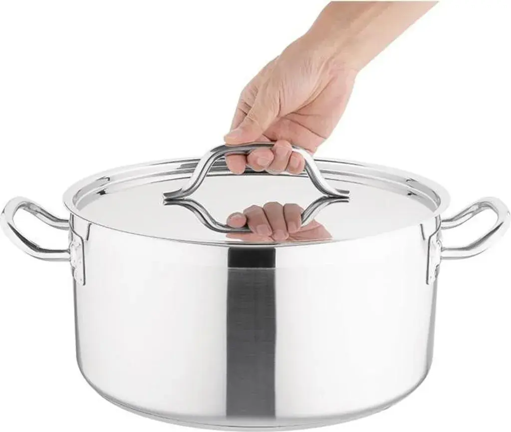 Прочная нержавеющая сталь. Подходит для индукционных плит. Многослойное алюминиевое дно. Отверстия для пара в крышке. Можно мыть в посудомоечной машине. Универсальная кастрюля для всех плит, включая индукционные. Объем 12 литров с равномерным распределением тепла для равномерного приготовления. Большой диаметр (320 мм) позволяет легко перемешивать ингредиенты во время приготовления. Две прочные ручки позволяют легко поднимать и переносить кастрюлю, даже когда она полная. За ручки можно держаться при перемешивании ингредиентов, что обеспечивает дополнительную устойчивость. Крышка имеет отверстия для пара, позволяющие выходить лишней влаге во время приготовления. Прочная центральная ручка позволяет легко снимать и устанавливать крышку. Можно мыть в посудомоечной машине, что экономит время и силы при очистке. Корпус: нержавеющая сталь 430 (0,6 мм). Дно: алюминий (0,5 мм). Дно: нержавеющая сталь 430 (0,5 мм). Размеры: 16 (В) x 32 (Ø) см. Нержавеющая сталь