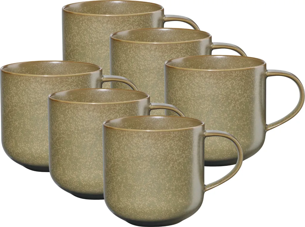 Кружка ASA Selection COPPA теплого оттенка мисо сочетает в себе современный дизайн и природную эстетику и станет идеальным выбором для любителей кофе и чая. Благодаря внушительному объему (0,4 литра) эта кружка предлагает достаточно места для ваших любимых горячих напитков - будь то ароматный кофе, успокаивающий чай или сливочный горячий шоколад. Набор состоит из шести кружек, чья мягкая матовая глазурь и землистый коричневый оттенок мисо излучают особую теплоту и естественность. Минималистичный дизайн и высокое качество изготовления делают их стильным спутником на каждый день. Изготовленные из высококачественного фарфора, кружки поражают своей прочностью и долговечностью. Их можно мыть в посудомоечной машине и использовать в микроволновой печи, что делает их особенно удобными в уходе и практичными. Будь то неторопливый утренний кофе или расслабляющий перерыв на чай - набор кружек ASA Selection COPPA мисо сочетает в себе функциональность и современный, естественный вид, идеально вписываясь в интерьер любой кухни или кофейни. Так называемые реактивные глазури придают изделиям великолепный внешний вид благодаря уникальным цветовым переходам, фактуре и другим особенностям, которые ни в коем случае не являются дефектом, а, напротив, делают каждое изделие уникальным. Разнообразные эффекты делают каждое изделие по-настоящему индивидуальным. Цветовые переходы, крапинки, точки, мелкие пузырьки и даже неровности не являются основанием для рекламации, а, напротив, специально предусмотрены производителем и придают вашей новой посуде индивидуальный характер. Фарфор, можно мыть в посудомоечной машине и использовать в микроволновой печи. В набор входит: 6 кружек с ручками, 0,4 л.
