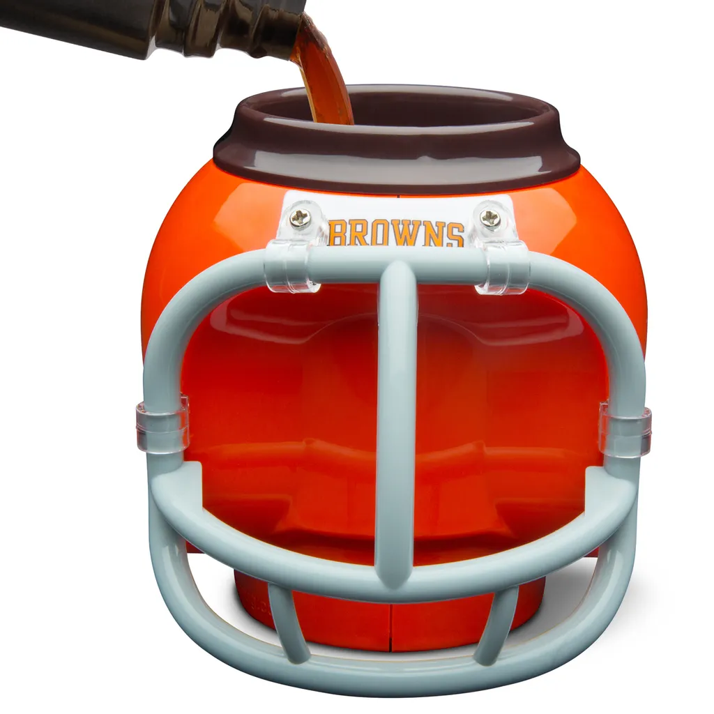 Кружка FanMug в форме шлема Cleveland Browns. Универсальная кружка. Хотите ли вы пить из нее, охлаждать банку с газировкой или поддерживать порядок на рабочем столе? Кружка FanMug в форме шлема вашей любимой команды станет настоящей приманкой для глаз, даже в вашей фан-зоне!