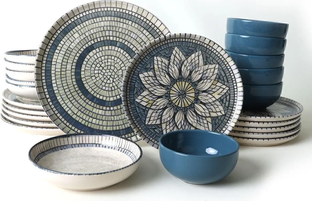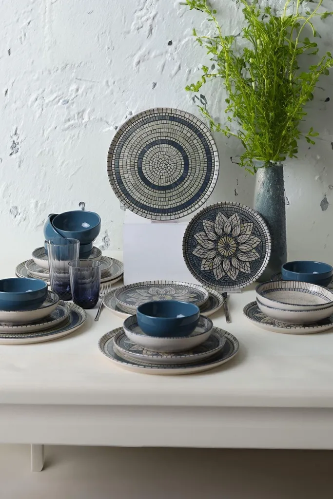 Обеденный гарнитур Mosaic Marvels на 6 персон от Keramika отличается современными формами и оригинальной концепцией, а его скрупулезная работа выполнена опытными мастерами. Его открытый и элегантный дизайн выделяет ваш стол из общей массы, придавая ему уникальный облик.