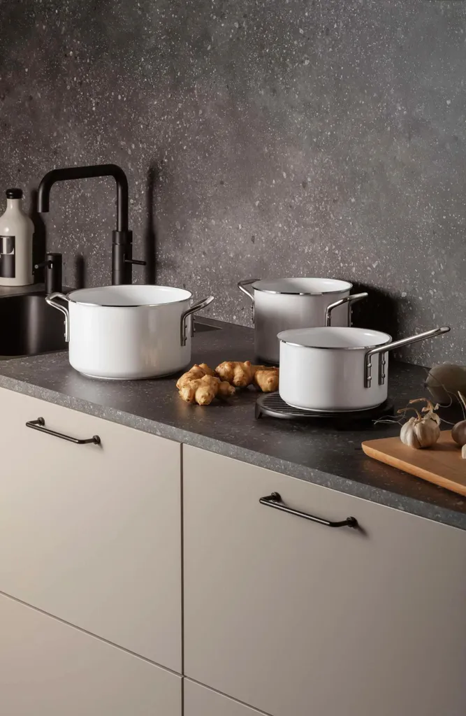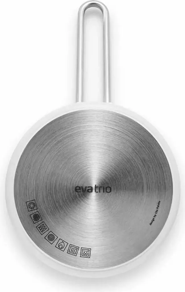 Посуда Eva Trio White Line подходит для всех типов плит, включая индукционные.