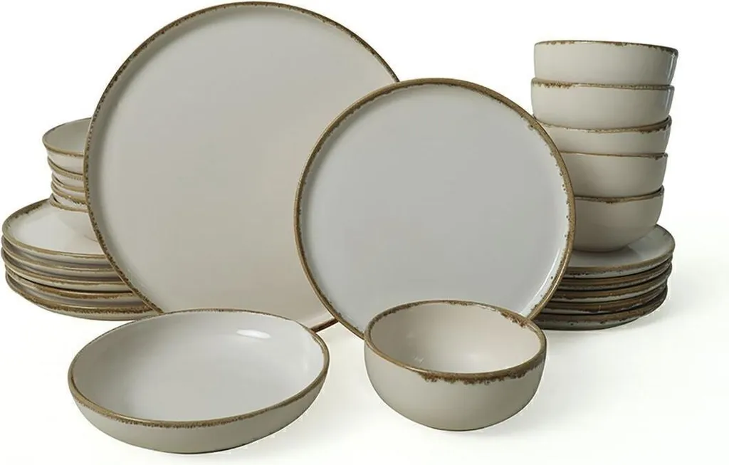 Гермогранит - это особый вид керамики, обжигаемый при высоких температурах, что обеспечивает плотную и прочную структуру. Изготовленный из натуральной глины и минералов, материал обжигается при температуре около 1200-1300 °C, что придает ему исключительную долговечность. Его непористая и плотная структура обеспечивает как эстетические, так и функциональные преимущества. Эти свойства делают керамогранит долговечным и надежным выбором для столовых и кухонных принадлежностей. В набор входят: - 6 десертных тарелок 22 см - 6 обеденных тарелок 28 см - 6 суповых тарелок 18 см - 6 мисок 12 см Характеристики: - Можно мыть в микроволновой печи и посудомоечной машине: Наши изделия можно мыть в посудомоечной машине и микроволновой печи. - Высокая прочность: Самым очевидным преимуществом изделий из керамогранита является их устойчивость к высоким температурам, ударам и царапинам.