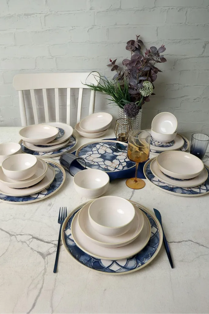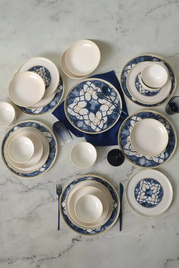 Гермогранит - это особый вид керамики, обжигаемый при высоких температурах, что создает плотную и прочную структуру. Изготовленный из натуральной глины и минералов, материал обжигается при температуре около 1200-1300 °C, что обеспечивает исключительную долговечность. Его непористая и плотная структура обеспечивает как эстетические, так и функциональные преимущества. Эти свойства делают керамогранит долговечным и надежным выбором для столовых и кухонных принадлежностей. В набор входят: - 6 десертных тарелок 22 см - 6 обеденных тарелок 28 см - 6 суповых тарелок 18 см (480 см3) - 6 мисок 12 см (400 см3) Характеристики: - Можно мыть в микроволновой печи и посудомоечной машине: Наши изделия можно мыть в посудомоечной машине и микроволновой печи. - Высокая долговечность: главным преимуществом изделий из керамики является их устойчивость к высоким температурам, ударам и царапинам.