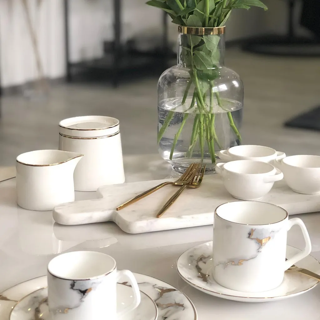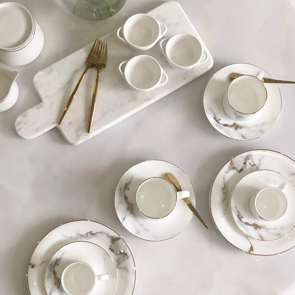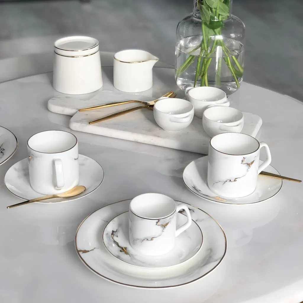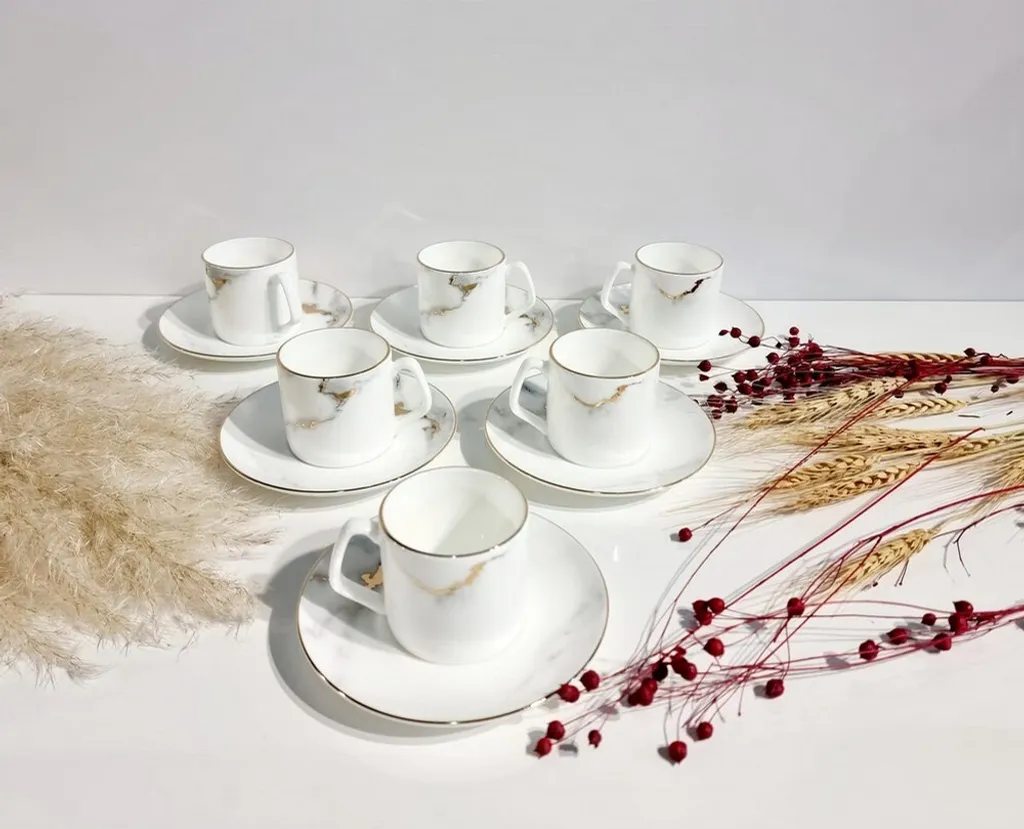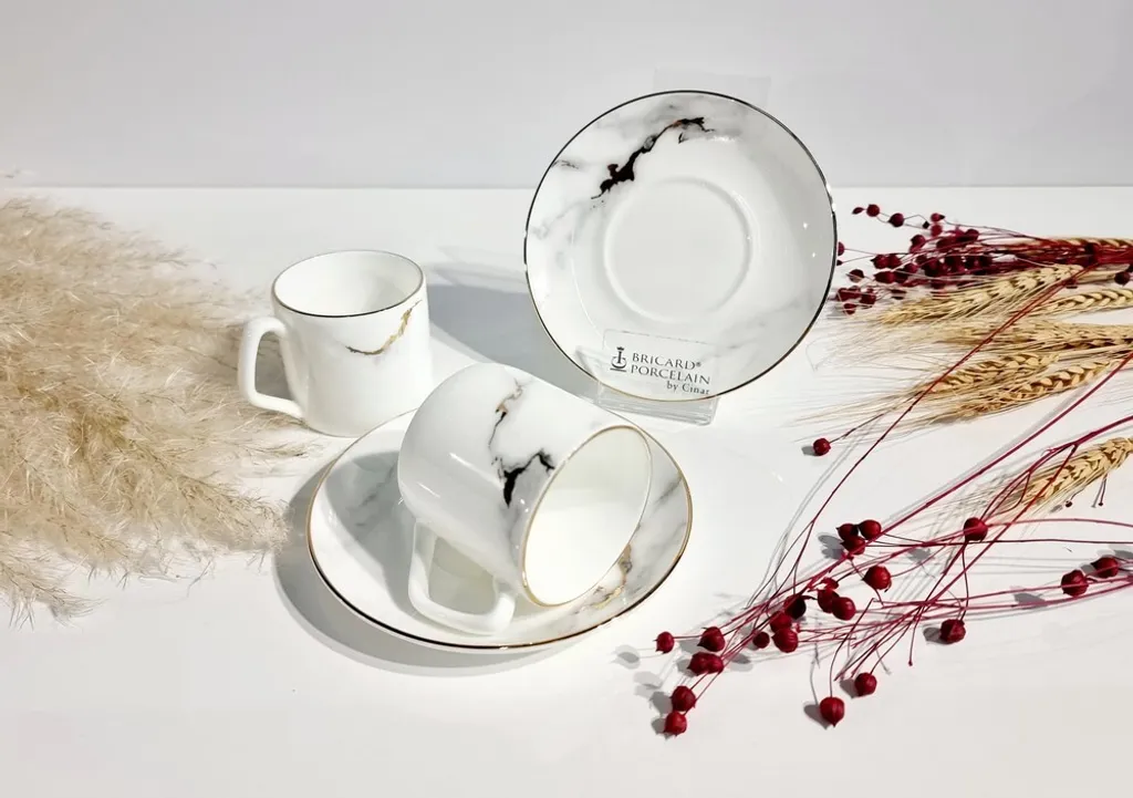 Мраморный кофейный сервиз Bricard из 12 чашек - идеальный подарок для любого кофемана. В набор входит все необходимое для идеальной чашки кофе: 6 чашек с блюдцами. Высококачественный фарфор можно мыть в посудомоечной машине. Бело-золотая цветовая гамма современна и неподвластна времени.