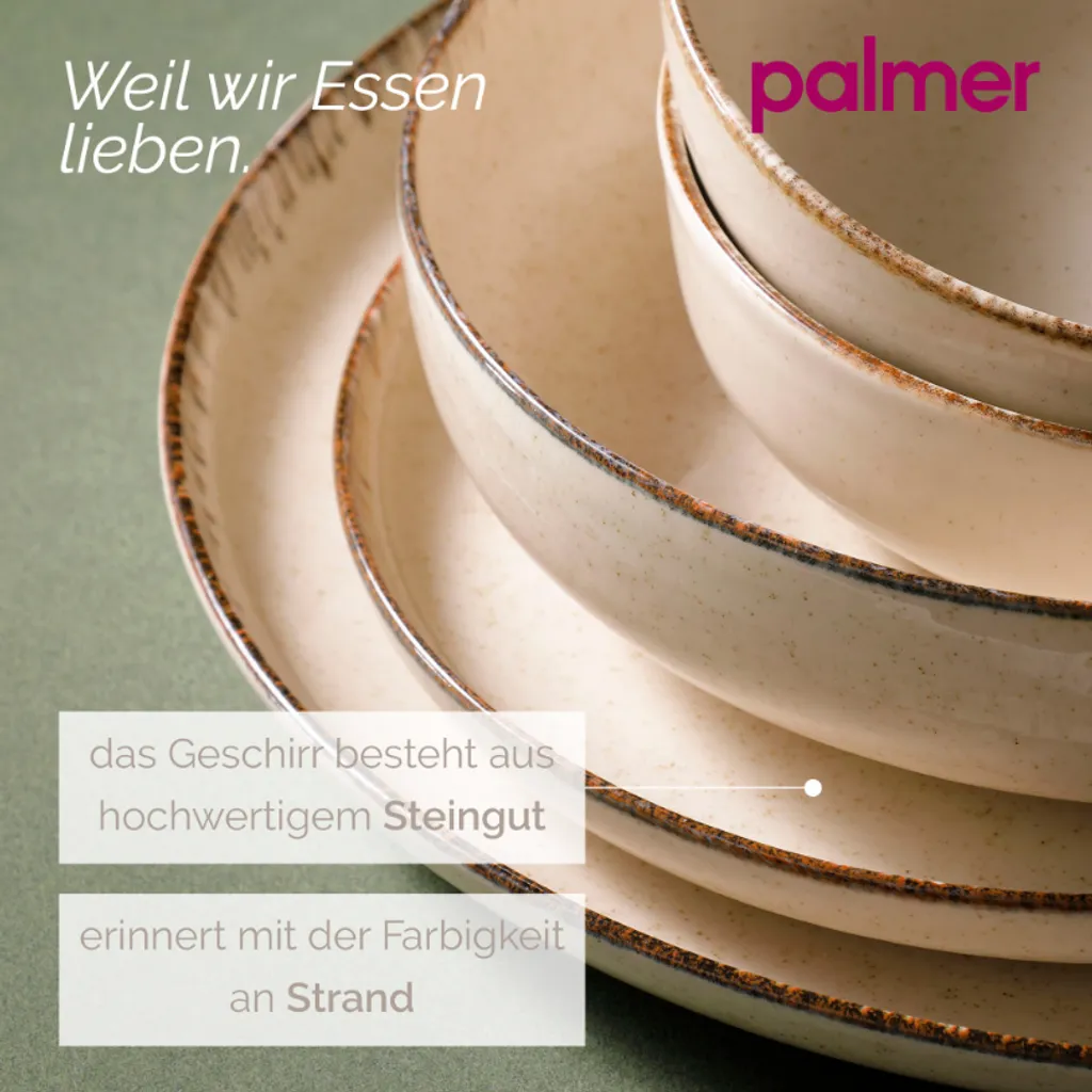 В Palmer мы настоящие ценители вкусной еды, поэтому, помимо идеально приготовленных блюд, мы уделяем большое внимание их подаче. Наш широкий выбор чашек, тарелок и мисок доказывает, что столовая посуда может быть не только функциональной. Ведь внешний вид - это главное, и наши уникальные изделия из керамики создают неповторимый образ. Наша посуда обжигается в печи при температуре 1100-1125 °C. Высокая температура позволяет получить исключительно прочную посуду, которая к тому же выглядит потрясающе. Помимо прекрасного внешнего вида, этот метод обеспечивает особую прочность и долговечность посуды. Наш набор столовой посуды из керамики идеально подходит для повседневного использования и легко моется вручную или в посудомоечной машине. Набор подходит для использования в микроволновой печи и выдерживает температуру до 300 °C, что делает его невероятно универсальным. Керамика не имеет запаха и вкуса, поэтому она никак не повлияет на восхитительный вкус ваших блюд. Этот кремовый сервиз на шесть персон в стиле ANTIGO состоит из шести тарелок для закусок (диаметр 28 см), шести тарелок для завтрака (диаметр 19 см), шести суповых тарелок (диаметр 19 см) и шести мисок (диаметр 15 см). Фарфоровый сервиз впечатляет элегантными цветами и темными деталями по краю. Наша керамическая посуда оживит вашу кухню и пробудит все ваши чувства. Этот современный сервиз станет отличным дополнением к интерьеру, дополняющим многие стили кухни или создающим эффектный контраст. Palmer - с любовью к еде.