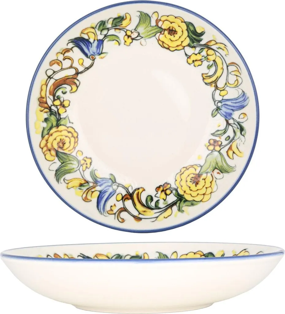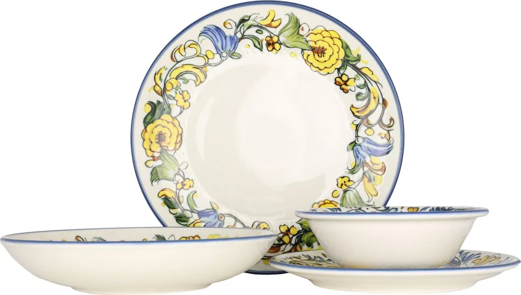 Вдохновленная традиционными сицилийскими узорами, коллекция Albufera с ее яркими цветами и цветочными мотивами станет идеальным выбором для уютных и гостеприимных ресторанов. Синяя кайма вокруг тарелки символизирует средиземноморский пейзаж. Albufera создает теплую атмосферу на профессиональной кухне благодаря своей высокопрочной глиняной формуле. В этот набор входят: - 6 обеденных тарелок 27 см - 6 десертных тарелок 21 см - 6 суповых тарелок 23 см (1000 куб. см) - 6 мисок 16 см (400 куб. см) Характеристики: - Подходит для использования в микроволновой печи и духовке: Благодаря нашему прочному сырью и обширным исследованиям и разработкам наши изделия можно безопасно использовать в микроволновой печи и духовке, даже в условиях высоких температур, характерных для ресторанов. - Можно мыть в посудомоечной машине: сектор HoReCa требует быстрых циклов обслуживания и очистки. Наш высокостойкий процесс глазирования защищает все изделия Bonna в высококоррозионной среде промышленных посудомоечных машин, отвечая требованиям высокоскоростных циклов. Устойчивость к перепадам температур: наши изделия устойчивы к резким перепадам температур и экстремальным температурным условиям на кухне благодаря прочной глазурованной поверхности и высококачественному сырью. Устойчивость глазури к повреждениям: царапины - распространенная проблема в сфере общественного питания и кейтеринга. Обширные исследования и разработки позволили нам создать передовую технологию глазурования, обеспечивающую высокую устойчивость к царапинам всей нашей продукции.