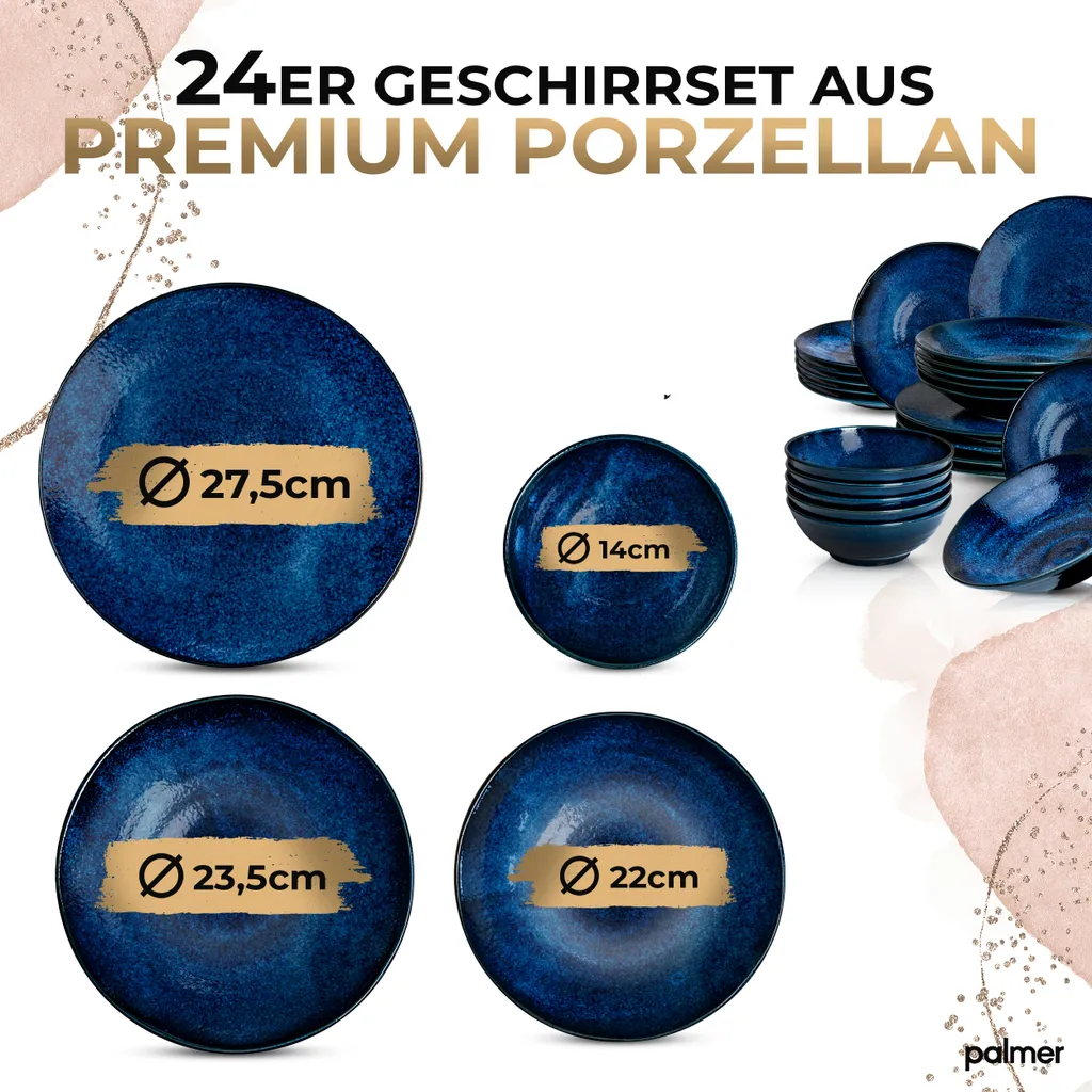 Набор столовых приборов Palmer Kiryu, фарфор, синий, 24 предмета PALMER
