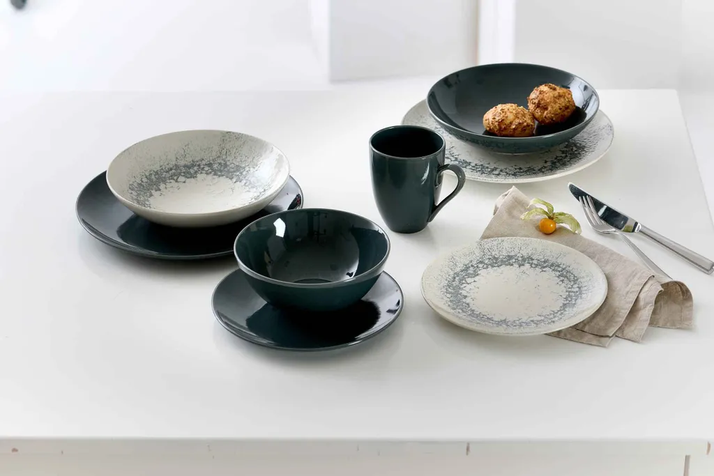Противоположности притягиваются: Cecina - это привлекательный союз сдержанной элегантности и деревенского очарования. Эта комбинированная посуда, сочетающая однотонные предметы с шелковистой мерцающей глазурью и предметы с узорами ручной работы в стиле ремесленничества, вдохновляет на изысканную и индивидуальную сервировку стола. Cecina также выигрывает благодаря практичной минималистичной форме купе, которая делает несколько выбранных предметов универсальными и экономит место в шкафу, поскольку вам не нужно хранить отдельные предметы для каждого блюда или случая. Короче говоря: будь то поздний завтрак, просмотр домашнего кинотеатра или шикарный ужин, благодаря своему оригинальному, но функциональному дизайну, Cecina с блеском справляется (почти) со всеми кулинарными задачами.