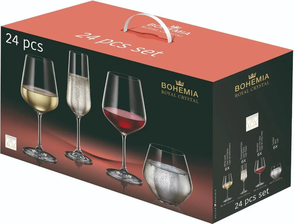 Набор бокалов Bohemia Tori, 24 предмета, хрустальное стекло BOHEMIA