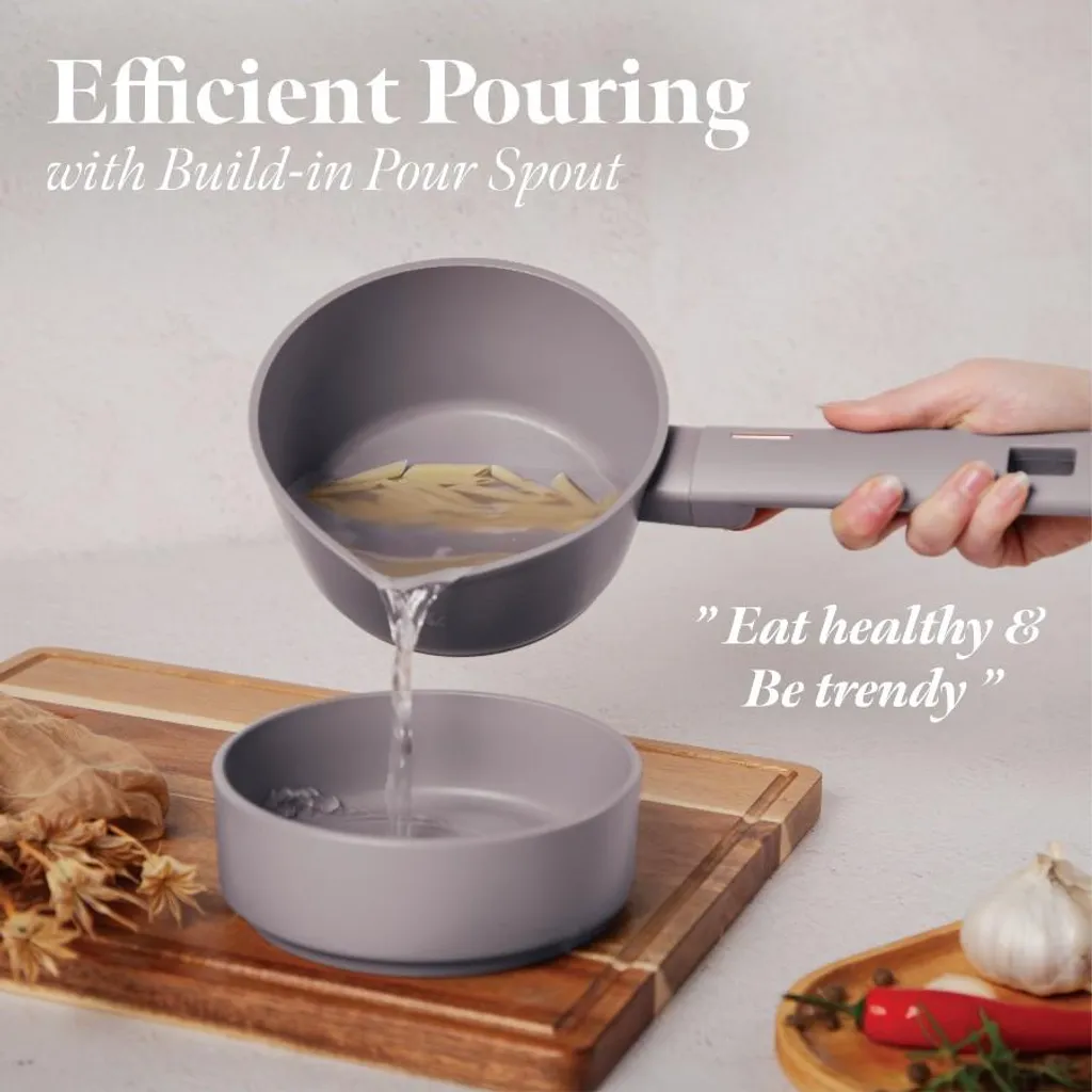 Прочная литая алюминиевая посуда позволяет готовить пищу без пригорания и с минимальным количеством жира. Титановое покрытие делает кастрюли чрезвычайно устойчивыми к царапинам. В них можно готовить вкусные и полезные блюда, сохраняя их сочность и пищевую ценность. Подходит для всех типов плит: газовых, электрических, керамических, галогенных и индукционных. Для поддержания идеального состояния изделия рекомендуется бережная очистка, поэтому следует избегать ежедневной очистки в посудомоечной машине. Рекомендуется ручная мойка. - Материал: кованый алюминий с антипригарным покрытием TitanPro - В комплект входит: - Диаметр глубокой кастрюли. 24 x 6,5 см, 2,3 л.