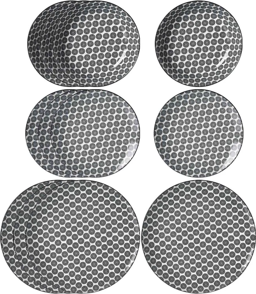 Комплект поставки: 4 десертные тарелки, 4 суповые тарелки, 4 обеденные тарелки