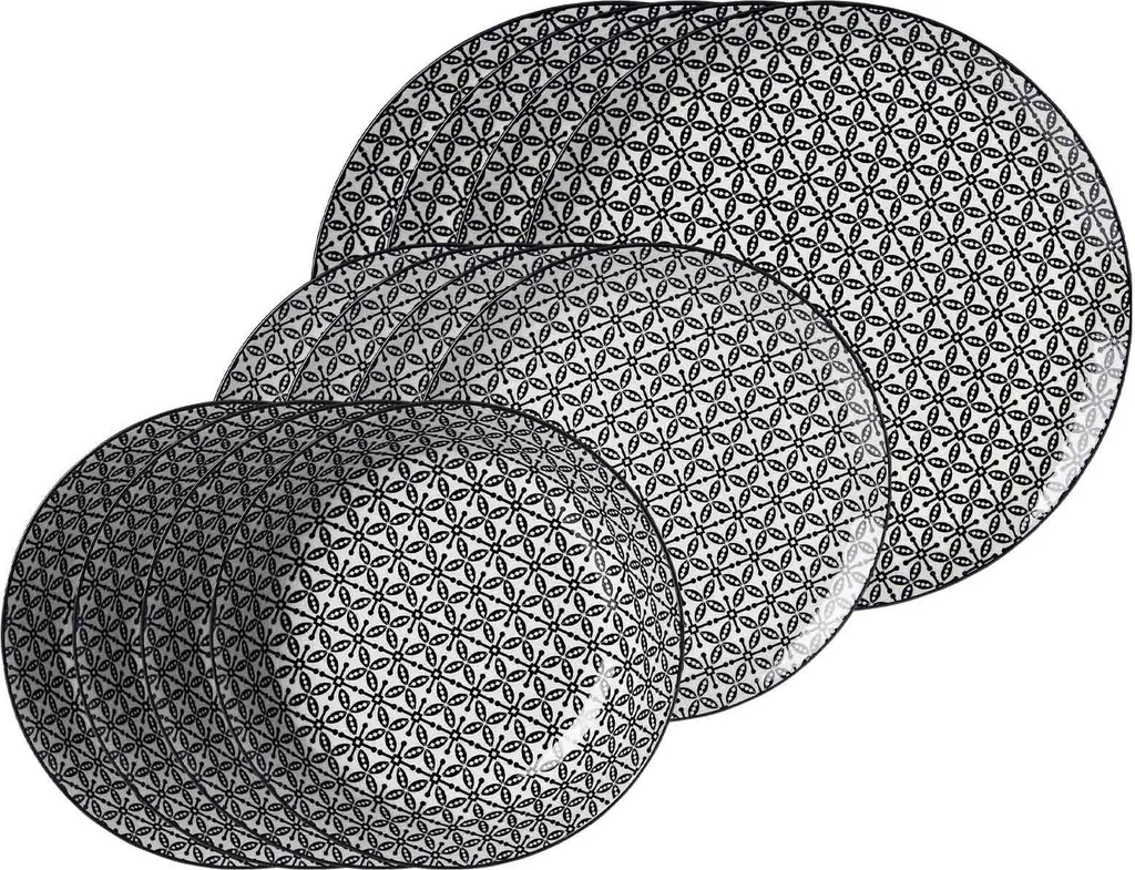 Комплект поставки: 4 десертные тарелки, 4 суповые тарелки, 4 обеденные тарелки