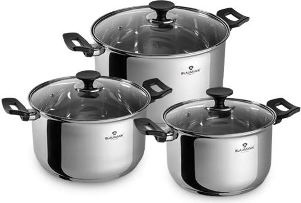 Универсальность этого набора посуды является главным преимуществом. Вы можете использовать кастрюли на всех типах плит, включая электрические, газовые, индукционные и керамические. Это делает набор идеальным для любой кухни, будь вы новичок или опытный повар. С набором кастрюль Blaumann вы сможете приготовить самые вкусные блюда. Преимущества набора кастрюль Blaumann: Прочная нержавеющая сталь для длительного срока службы; Крышка из термостойкого стекла для экономии энергии; Эргономичные ручки для безопасного использования; Подходит для всех источников тепла; Можно мыть в посудомоечной машине для легкой очистки. Набор не только функциональный, но и стильный. Элегантный дизайн впишется в любую кухню и превратит приготовление пищи в удовольствие. Готовите ли вы быстрый ужин в будний день или пышное застолье, этот набор кастрюль всегда готов к работе. С набором кастрюль Blaumann вы инвестируете в качество и удобство. Сочетание функциональности и элегантного дизайна делает эти кастрюли ценным дополнением к вашей кухне. Наслаждайтесь готовкой с этим прекрасным набором кастрюль и дайте волю своему творчеству.