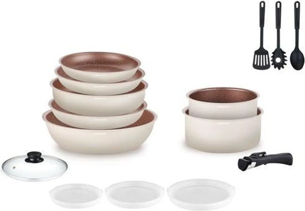 Для повседневного использования: набор алюминиевой посуды Arthur Martin идеально подходит для ежедневного приготовления пищи и идеально складывается в стопку! Готовить стало проще: готовьте вкусные блюда для себя и своей семьи с этим набором кастрюль Arthur Martin. Съемная ручка обеспечивает удобный захват. Антипригарное покрытие позволяет готовить здоровую пищу без добавления жира. Этот набор из 18 предметов подходит для всех плит, включая индукционные. Кастрюли и сковороды можно использовать даже в духовке - для еще большего удовольствия от готовки!