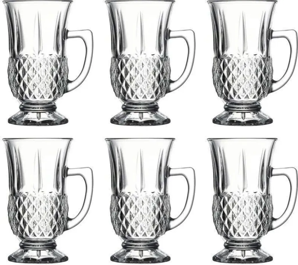 - В комплекте: 6 стеклянных чашек с ручками