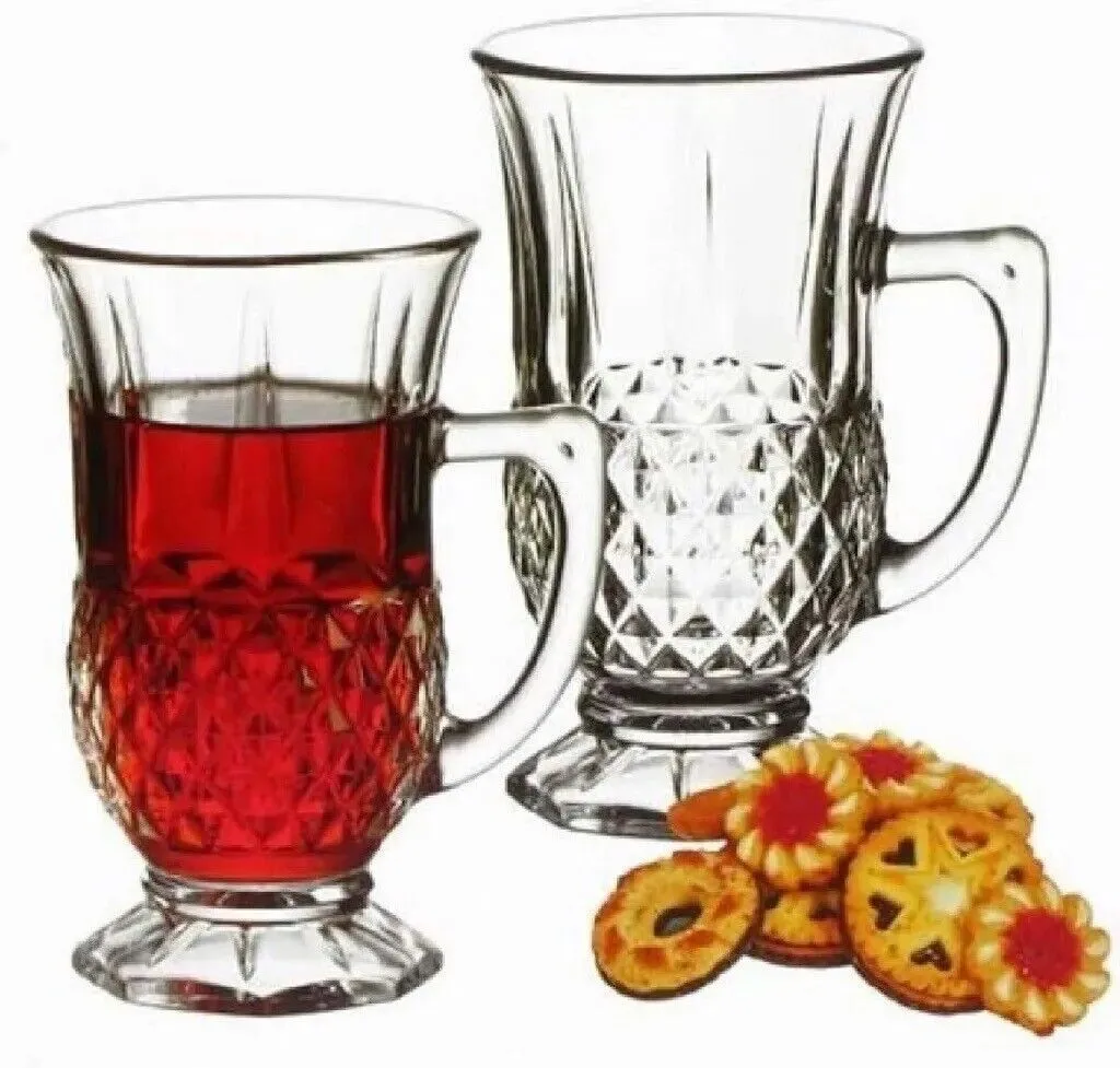 Набор из 6 чайных стаканов с ручками, можно мыть в посудомоечной машине, 125 мл, прозрачное стекло