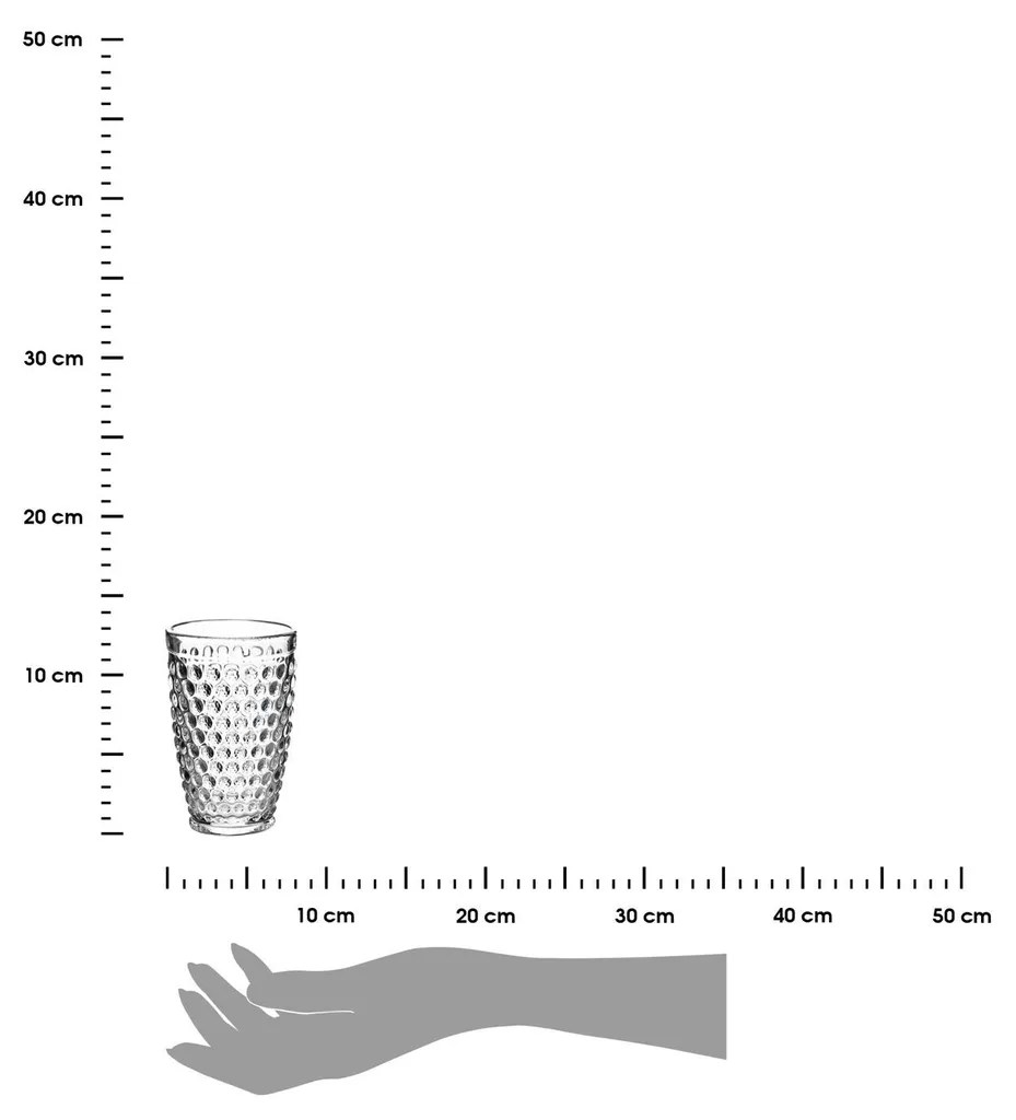 ХарактеристикиПрозрачные стенки стаканов ELISE STRIPE украшены регулярным тиснением в виде точек. Стаканы имеют простую цилиндрическую форму, слегка сужающуюся к низу, что делает их удобными для удержания. Объем стаканов - 380 мл. Размеры: 12,5 x 7,8 см (высота x диаметр). Материал: стаканы изготовлены из толстого стекла, прочного и устойчивого к царапинам. Их можно мыть в посудомоечной машине и использовать в микроволновой печи.