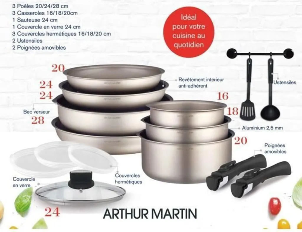 Набор посуды из 15 предметов - алюминий ARTHUR MARTIN