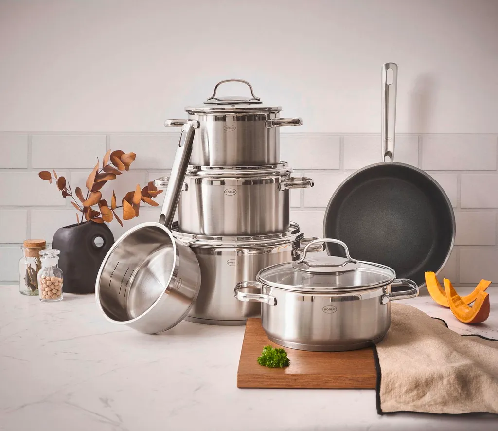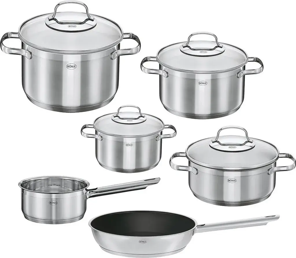 Этот набор посуды отличается не только элегантным дизайном, но и высокой функциональностью и удобством использования. Нержавеющая сталь обеспечивает устойчивость кастрюль к коррозии и легкость очистки. С Rösle вы выбираете качество и долговечность для своей кухни. Закажите сегодня!