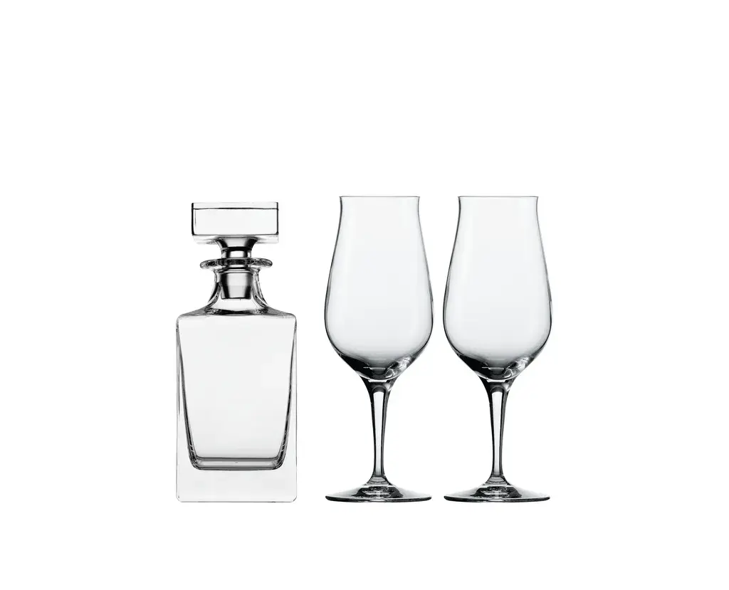Этот элегантный набор для виски со стаканами позволит вам насладиться особыми моментами. Бокалы для носа идеально подходят для дегустации высококачественного виски. Тюльпаноидная форма стаканов, сужающаяся кверху, концентрирует ароматы виски ближе к носу. Прозрачное хрустальное стекло также точно воспроизводит цвет виски. Входящий в комплект декантер дополняет композицию и обеспечивает стильное хранение односолодовых виски и изысканных купажей. Бокалы можно мыть в посудомоечной машине. Графин следует мыть вручную.