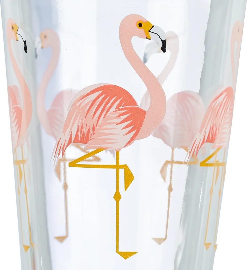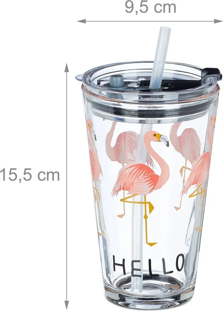 Ищете оригинальные и практичные стаканы? Откройте для себя наши модные стеклянные стаканы с изображением фламинго! Этот набор из четырех стаканов идеально подходит для сока, воды, холодного чая и других напитков. Они создают чудесное летнее настроение и подходят как для использования в помещении, так и на улице. Благодаря плотно закрывающимся крышкам эти стаканы идеально подходят для пикников, садовых вечеринок и других мероприятий на свежем воздухе. Используйте прилагаемую трубочку или откройте отверстие для питья в крышке, чтобы легко насладиться напитком.