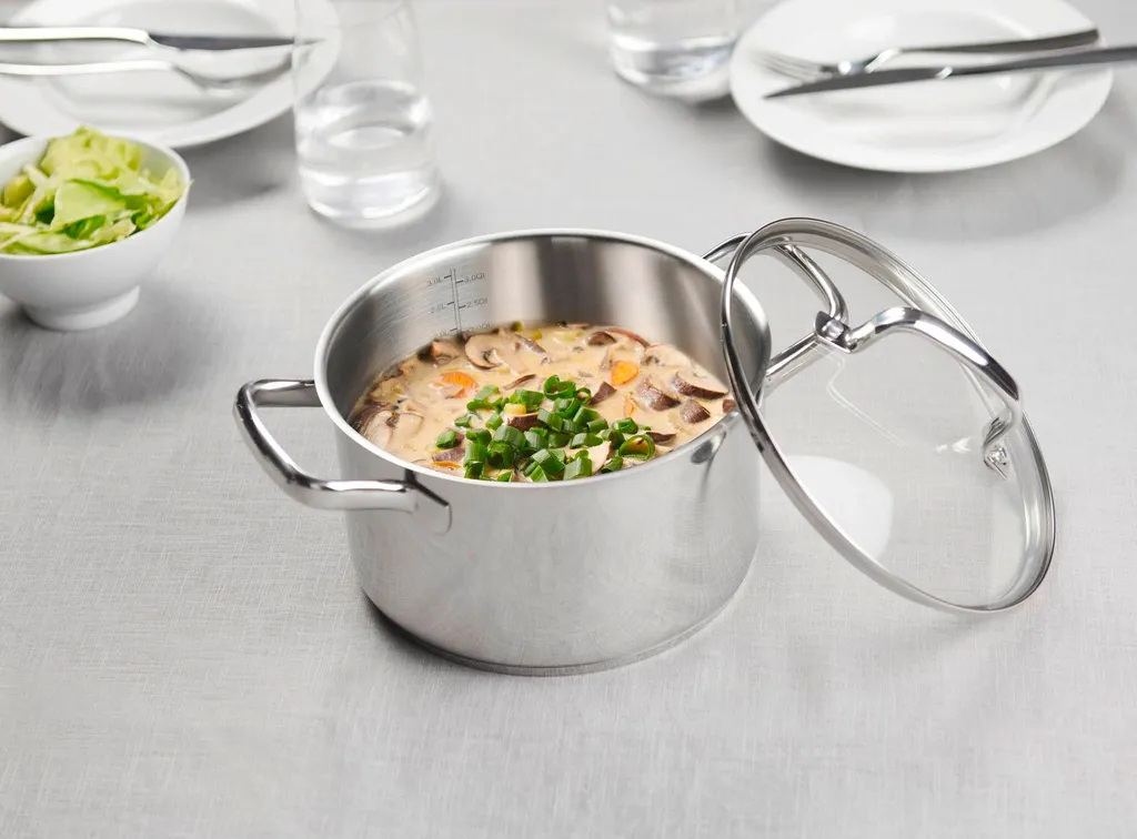 Набор посуды Homeware из 4 предметов - универсальность для вашей кухни Этот набор посуды идеально подходит для тех, кто ценит качество и долговечность. Универсальные кастрюли позволяют готовить самые разные блюда, от вкусных супов до ароматных соусов. Эргономичные ручки обеспечивают максимальный комфорт во время приготовления. Благодаря высококачественной нержавеющей стали кастрюли легко моются и сохраняют свой блеск долгие годы. Не ждите больше и обновите свою кухню так, как она того заслуживает.