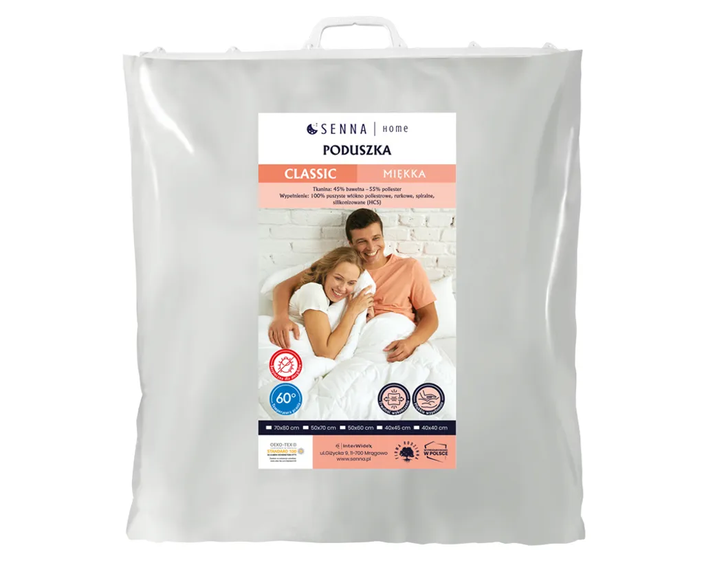 Подушка Senna Home CLASSIC SOFT - это классическая подушка для сна средней жесткости для людей, которые ищут удобную, мягкую и прочную подушку, которая идеально адаптируется к голове и шее. Подушка Senna Home CLASSIC SOFT изготовлена из высококачественных материалов и имеет прочную конструкцию. Это делает ее изделием для многолетнего использования. ТКАНЬ 45% Хлопок