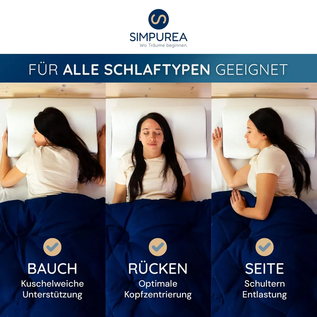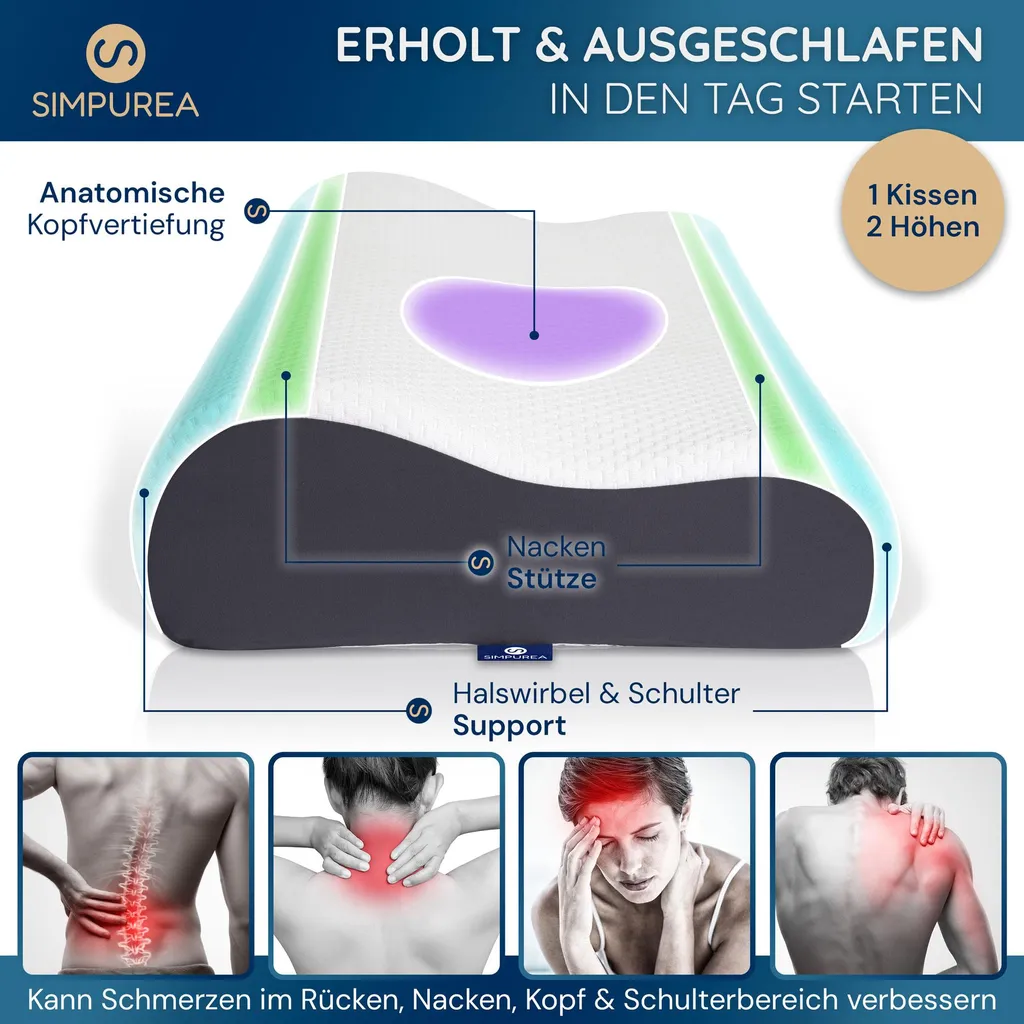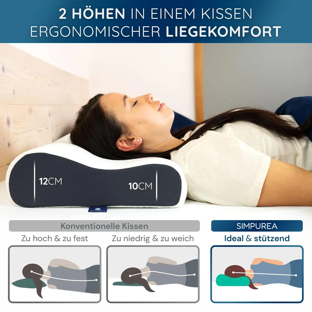 Благодаря компактным размерам 62 x 35 x 12/10 см и весу 1,33 кг подушка для сна SIMPUREA идеально подходит для повседневного использования или в качестве спутника в путешествиях. Современный дизайн с наполнителем из пены с эффектом памяти и вентиляционными отверстиями сочетает в себе стиль и функциональность, идеально дополняя любую обстановку для сна. Откройте для себя ортопедическую подушку для сна SIMPUREA - для персонализированного комфорта и приятных ощущений во время сна!