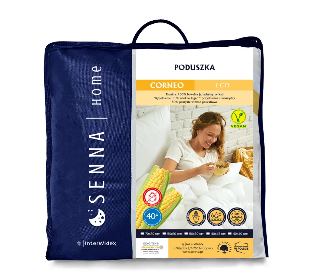 Подушка Senna Home CORNEO ECO создана для тех, кто ценит высокое качество и комфорт. Это удивительно мягкая и пушистая подушка с наполнителем из натуральныхкукурузных волокон, покрытых нежным, роскошным перкалем.