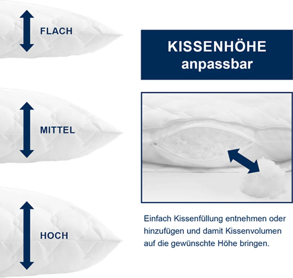 Подушка имеет съемный внутренний мешок на молнии. Шарики из полого волокна можно вынуть, чтобы отрегулировать объем и высоту подушки. Благодаря этому подушка подходит для сна на боку, спине и животе, обеспечивая оптимальную поддержку головы и шеи. Эта подушка особенно полезна для аллергиков, поскольку ее можно стирать при температуре до 60°C, что гарантирует здоровый и комфортный сон. irisette - Мастерство для вашего идеального сна! Этот традиционный немецкий бренд гарантирует высокое качество продукции, обеспечивающей наилучшие условия для спокойного и здорового сна.